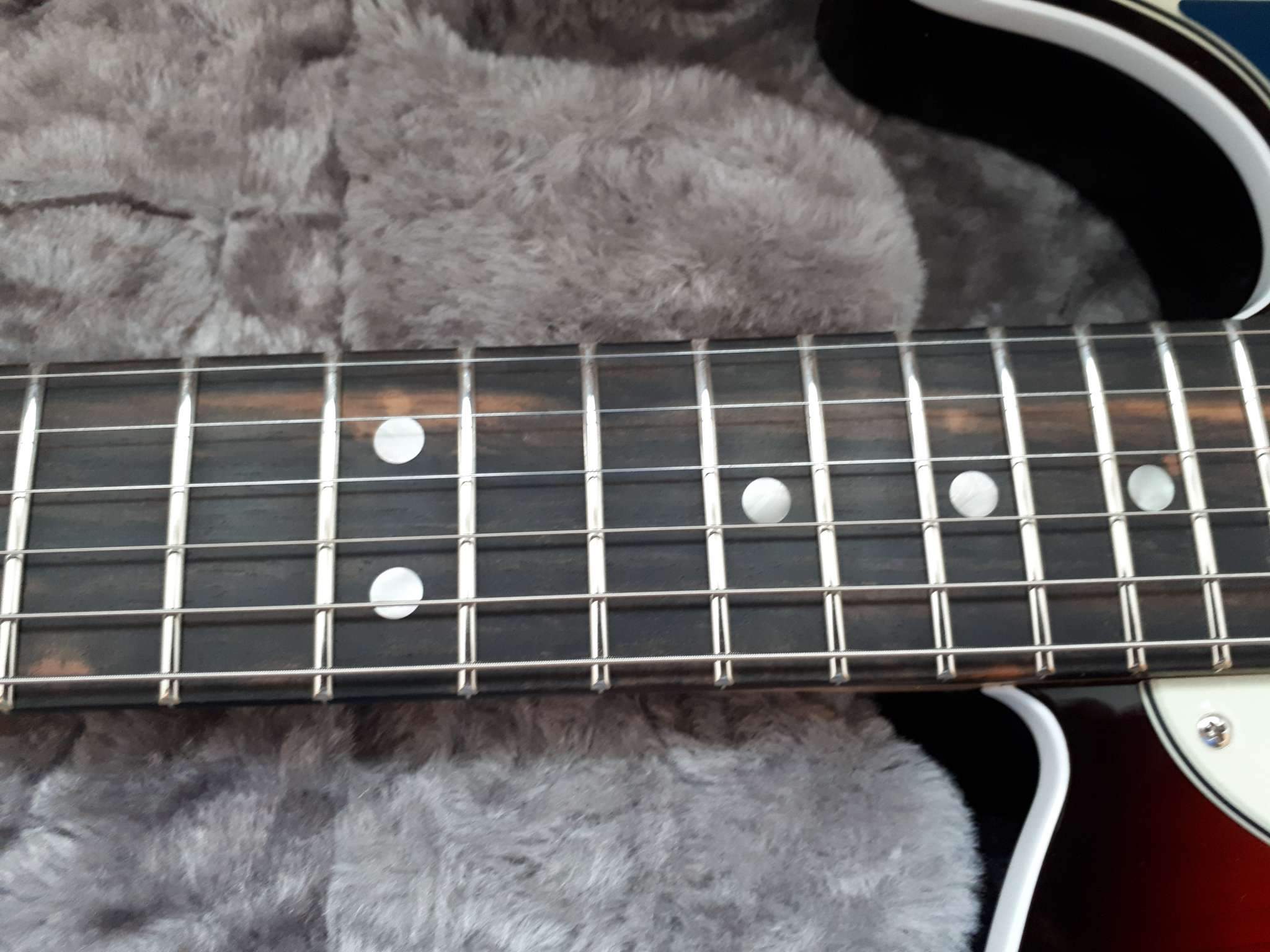 если есть вкрапления и осветления - это не качественное эбони и уважающий себя и потребителя производитель отбирает его.. я никогда за последние 40 лет не видел эбони со светлыми полосками на кастомах 70х годов, сг-шках 73-74 годов.. это не значит, что их нет, но я не видел.. это говорит о том, что гибсон видимо старался..