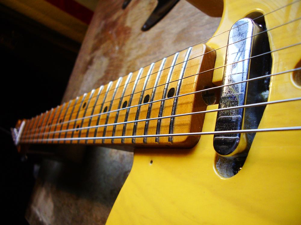 бридж немного тиховат, немного мутноват (это бывает иногда), а бриджевый не пронзительный, а какой-то мягко-серединистый, в среднем положении непонятный тембр.. я вообще людям не вру про качество их гитары, поэтому мне многие и доверяют прослушку, настройку, экспертизу.. но тут сразу не стал огорчать Саню.. ))