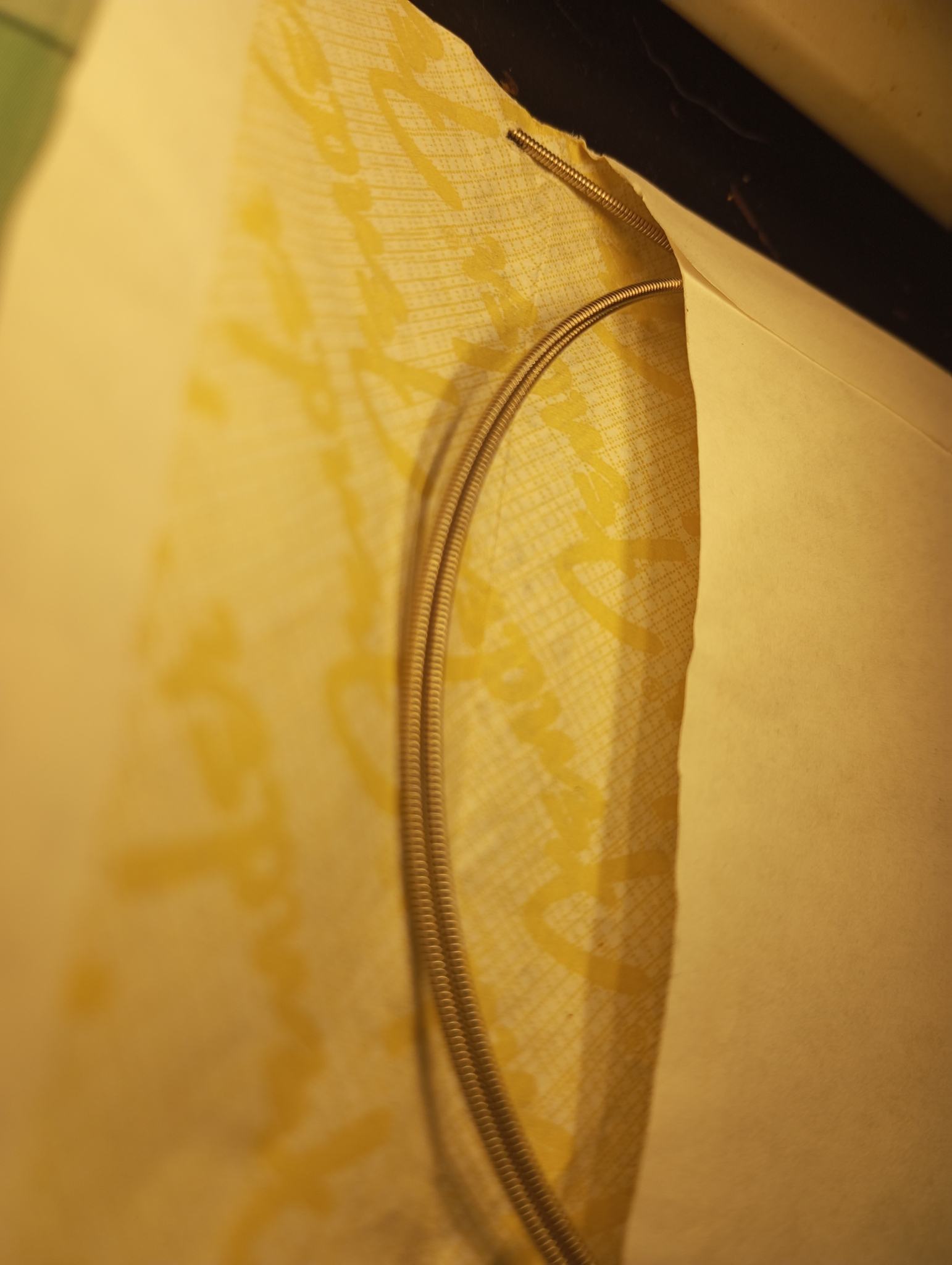 Как-то друг, москвич, привез подарил новые "струны для электрогитары". Плоские, с прикольными бобышками, типа обжатых колокльчиков. Что-то вроде как гильзами трос обжимают чтоб не пушился. на велах например.
