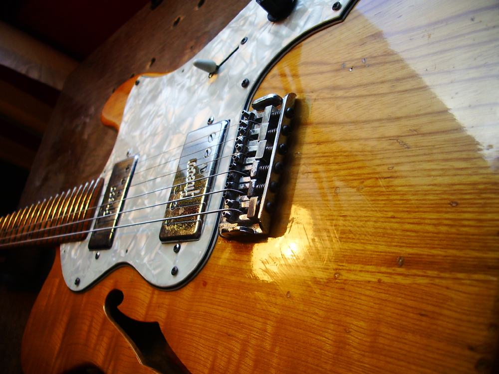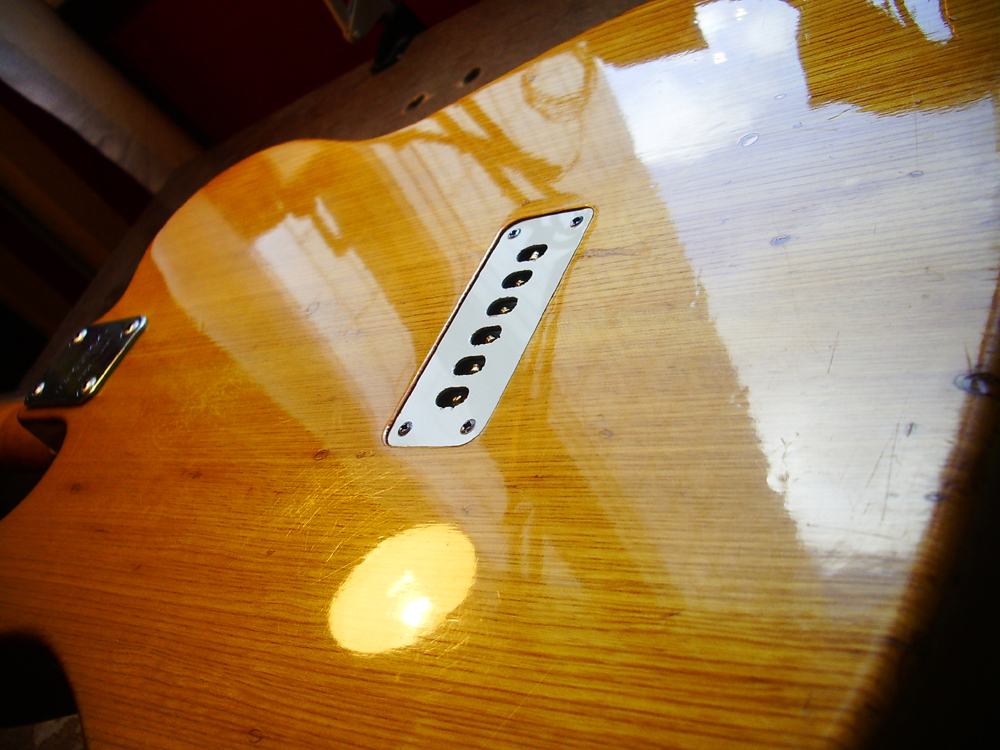 Судя по каталогам Greco это TE 350 или 350I 1974-1976 год. Теперь радиус на ней 12", лады Sintoms низельбер 2.3, высокие но не толстые, ставил себе уже такие на страт Tokai, понравились по ощущениям. Вполне себе симпатишный телек, судя по немного просевшей краске на торце видно что бутер из двух кусков, сама гитарка не тяжелая 3,3 кг. Звучки добротно выглядят на медных пластинах, гриф клен из трех кусков на одной стороне проглядывается благородная птичеглазовость