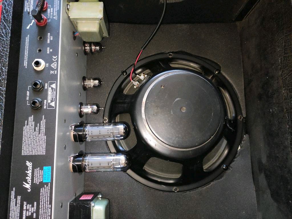 Приветы! Решил я себе приобресть Marshall DSL20CR с рук, в описании заменён динамик на CELESTION G12M „GREENBACK“ 315 сторговались на 280. Приехал, сам привёз. Тестировали, но басов явно не хватало, думал что на кухне другая акустика да и мало ли что. Короче продавец уехал. Я его вскрыл, а там красота!