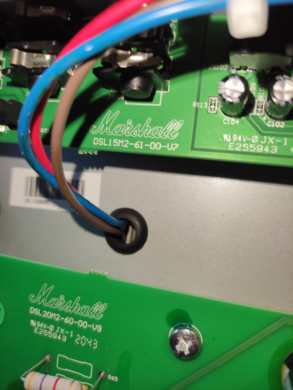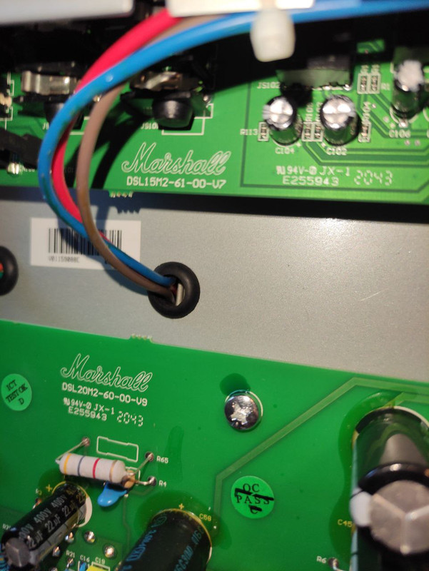 Попробуй DSL20 на режим popping - медиатором по струнам на зелёном канале и одновременно переключи на красный канал. Потом так же на красном канале аккорд по струнам и одновременно переключить на зелёный канал. Будет хлопок в динамик при переключениях каналов?
