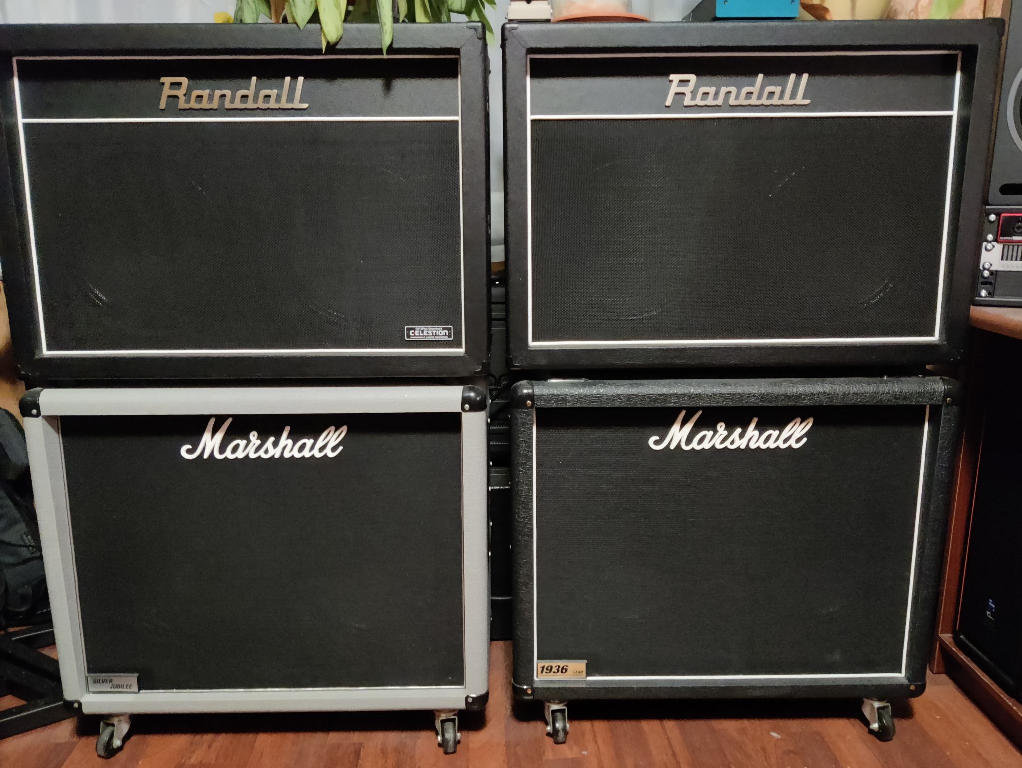 У меня как раз 4 кабинета 2х12 именно с такими динами. Использую стерео и миксую одно с другим.Обычно парами использую Creamback c Greenback, или G12T75 c Vintage. (Ссылка на вложение) Жаль места больше нет и соседям не очень нравится