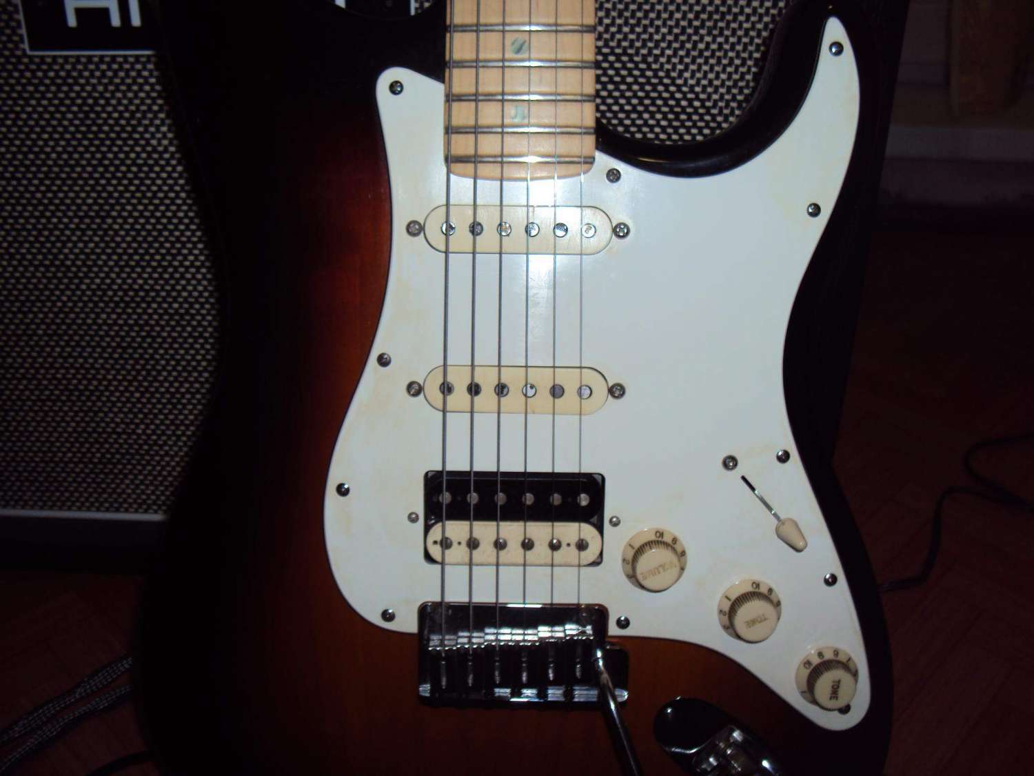 Инструмент - ясеневый страт из подписи. Синглы - Irish Tour в нэке, Mother's Milk в миддле. Распайка - обычная для стратов, т. е. бридж без тона