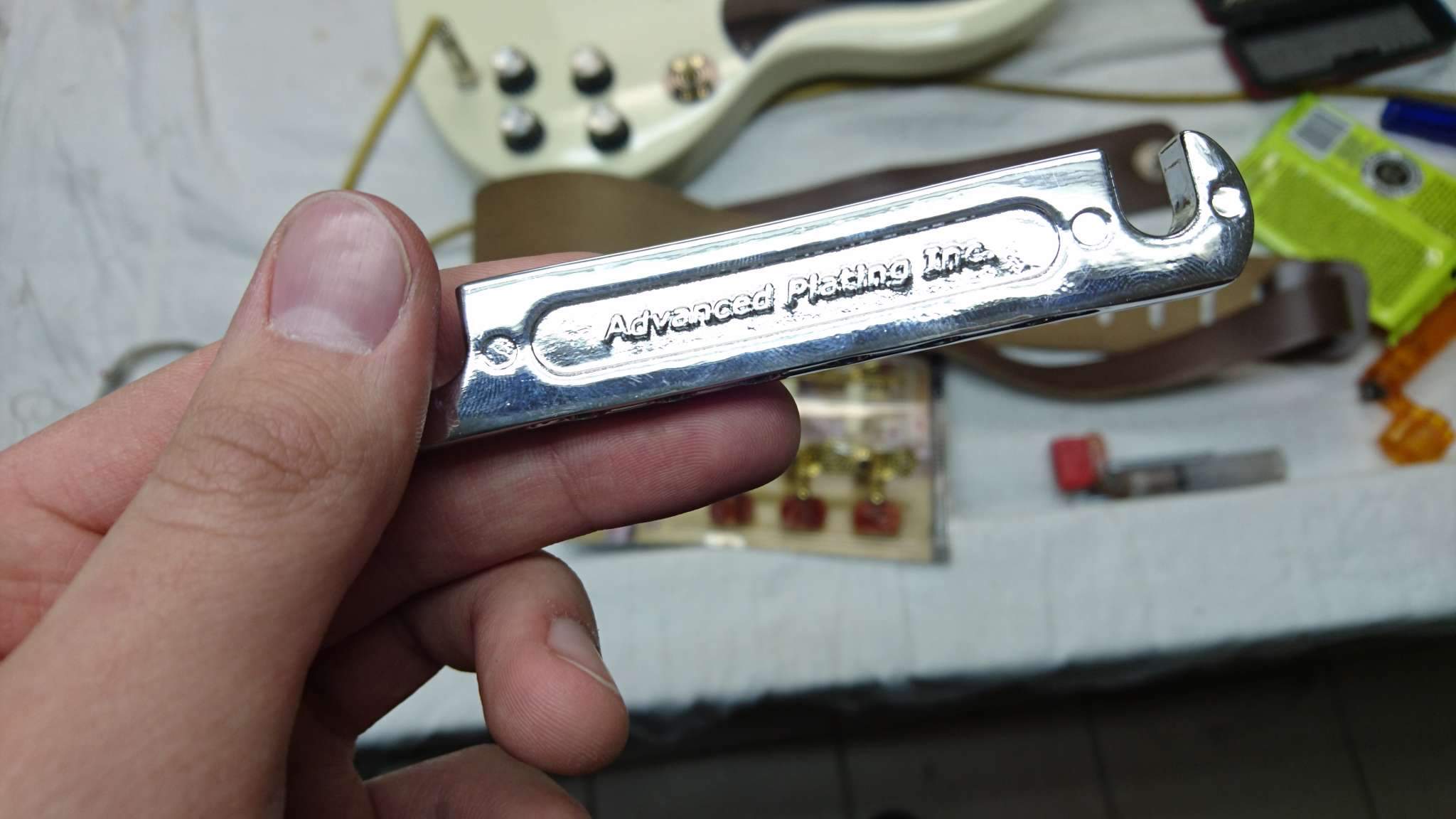 Die Pickupcover wurden entfernt und durch geschlossene aus Chrom von Kluson ersetzt. Dabei habe ich gleich die Pickups mit PU-Hartz gefüllt, um Feedback zu verhindern. Keine Angst. Ich weiß, was ich tue.