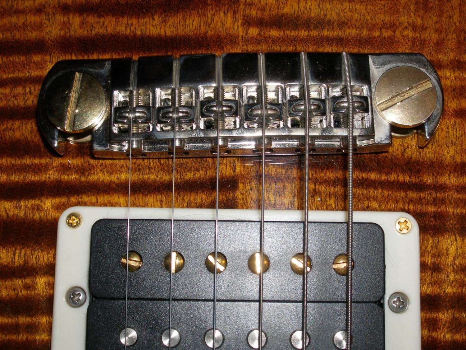 Проблема в том, что толщина струн разная и нельзя абсолютно точно настроить все струны только 2-мя болтами по краям на бридже. В результате какие-то струны будут звенеть или расстояние будет слишком большое.