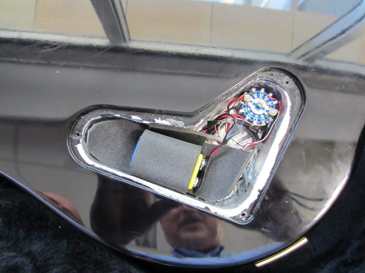), set neck, wrap-around bridge. Владелец слегка "помодил" инструмент - поставил раму звучка с тюнером и батарейку для него в отдел с потами и проводами, заодно обклеил фольгой само отделение. Как определить оригинальность звукоснимателей? На вид похожи на HFS treble/Vintage bass, но фиг его знает. И насколько "моды" влияют на стоимость инструмента? Люди хотят за гитару 1500 евро, это реально?
