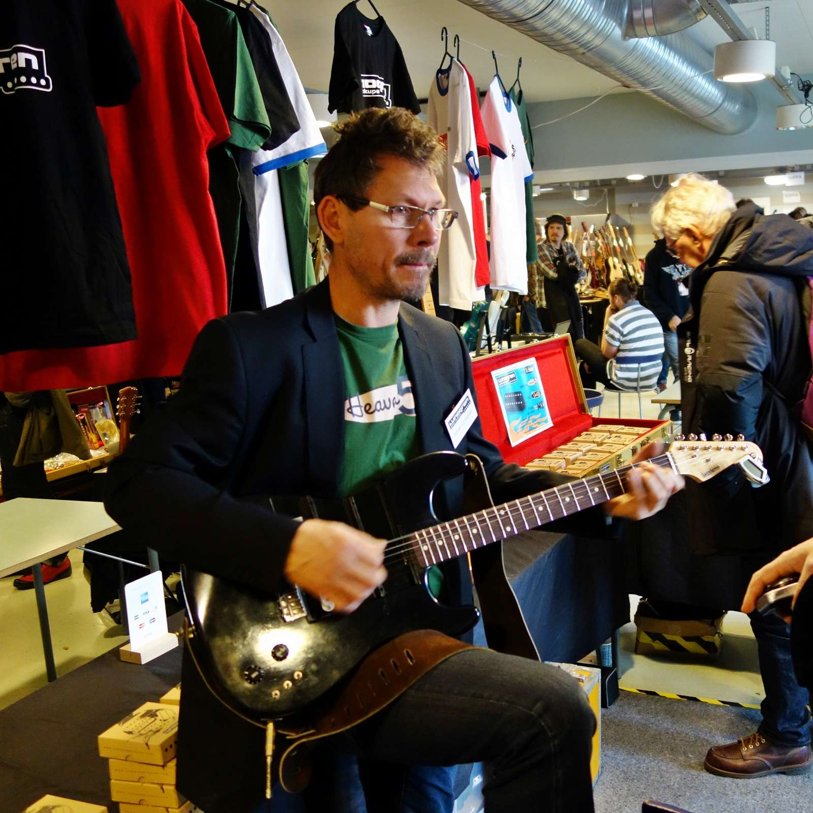 Я разговаривал с Юнасом Люнгреном, который делает винтажные датчики с 91го года, так у него все датчики тестируются на одной и той же гитаре, вернее хамбакеры на типа лес поле, а синглы на типа страте и на двух одних и тех же усилках, под вроде один и тот же мьюзик. Все логично – все одинаковое, только объекты измерения разные. На фотке виден его страт с тремя пазами для подключения любых датчиков - замена быстрая, как рожок в Калашникове поменять...