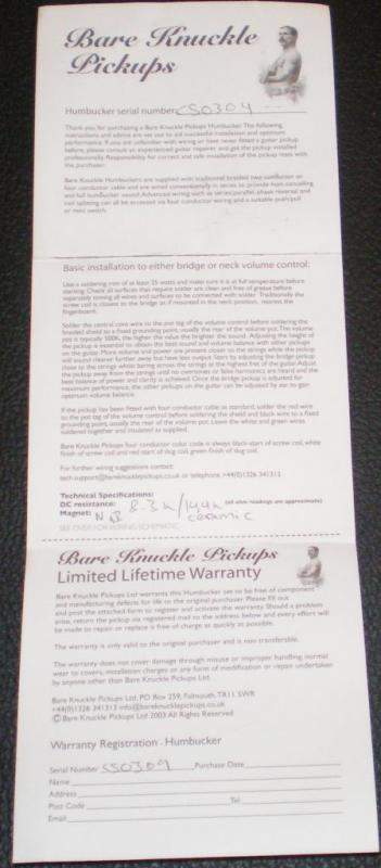 Приехали звукосниматели которые я планировал поставить на свой PRS Custom24-Bare Knuckle Cold Sweat.Заказал сразу сет-2 датчика.Раз пообещал немного рассказать о впечатлениях-то делюсь.Поставил пару дней назад-не думал, что получу такой щенячий восторг!!!Звук стал на рифах более низастый,упругий и мясистый более разборчивый и читаемый то же и при солопилении-гитара флажелетит в любом месте- даже на малой громкости.Звук гитара отдаёт сразу словно покорилась почувствовав, что негоже скромничать при таких звучках.Получился звук такой будто бы гитару прочистили от лишнего и ненужного шлака.Невольно напрашивается сравнение со старыми бобинниками когда головку почистишь спиртом-примерно такие ощушения.Играть стало намного легче и комфортней от звука просто улетаешь и не хочется выпускать инструмент из рук.Датчики номерные с паспортом,что не так часто встречается.