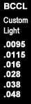 У меня на всех стоят зеленые Ерни Бoлл 10-46 и иногда на одной красные того же Ерни Skinny top heavy bottom 10-52.