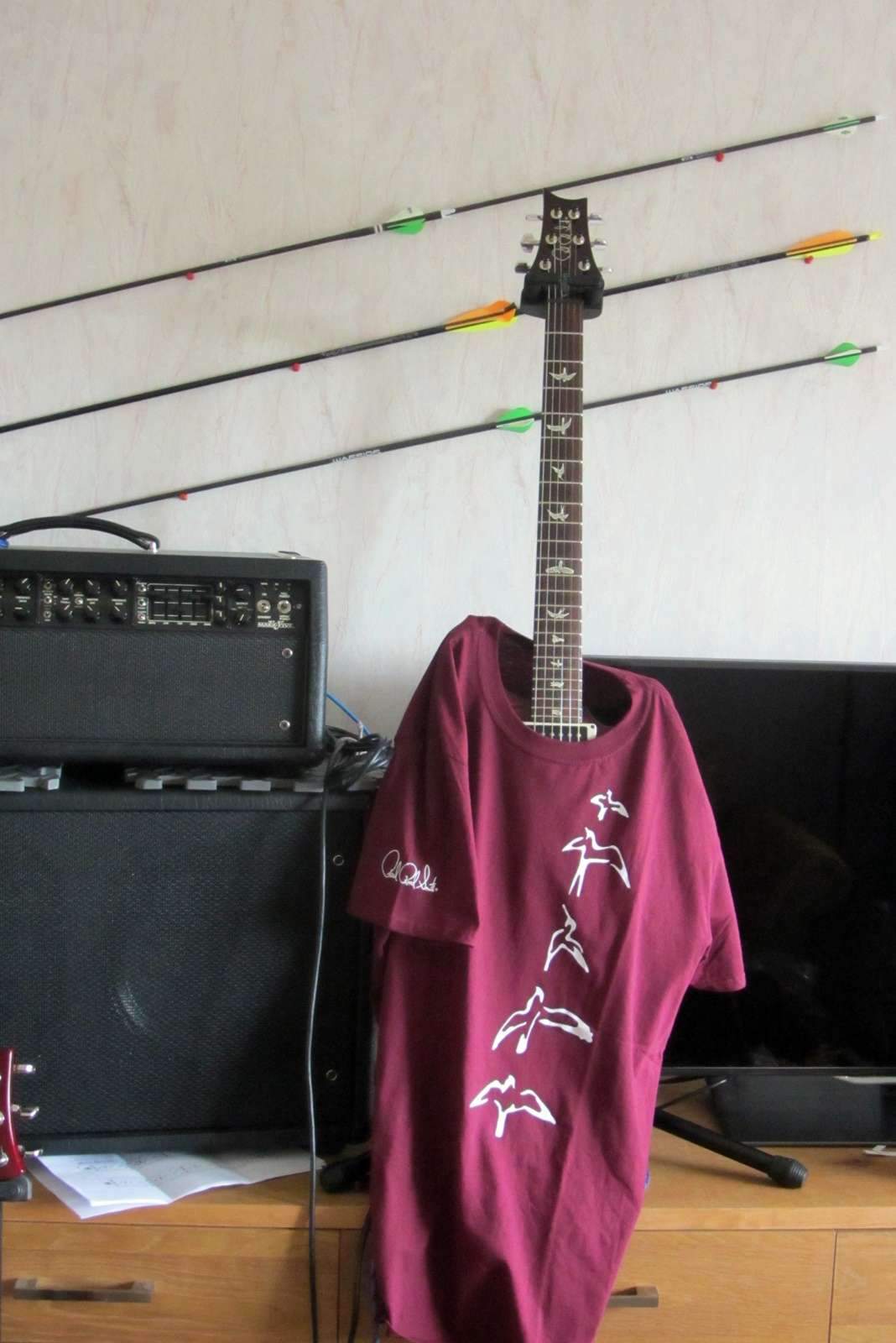 Получил посылку с контактами, струнами и среди прочей фигни - майку с ПРС-овской символикой - на рукаве вместо шеврона подпись и