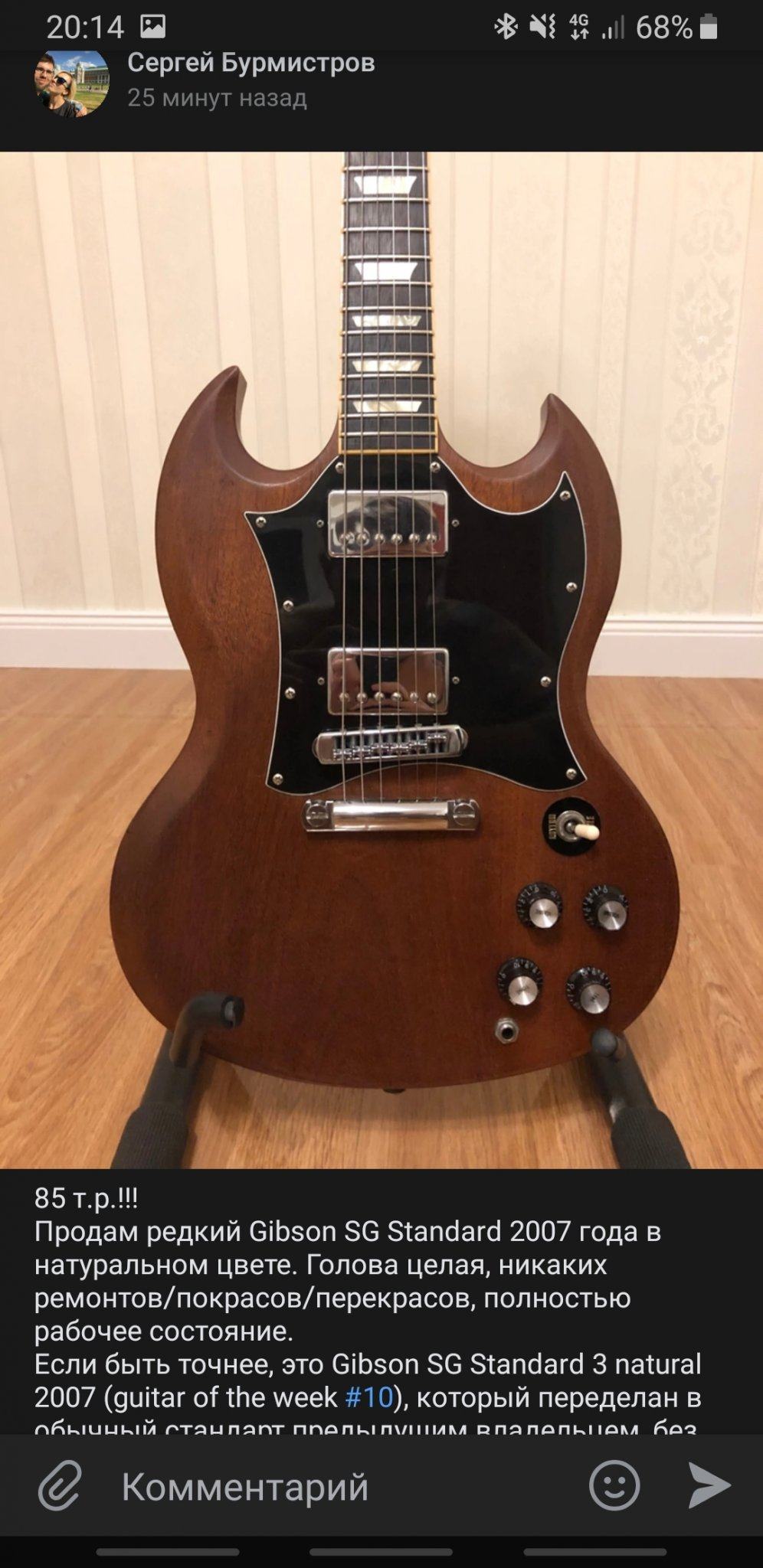 https://www.avito.ru/alapaevsk/muzykalnye_instrumenty/gibson_sg_standard_2005_2085697285Вот ценник неплохой в целом, но продавец какой-то неадекват, к сожалению. На вопрос "менялись ли лады" год назад ответил, что не менялись, а на замечание - "так окантовки нет" послал меня матом, потом сообщение удалил)