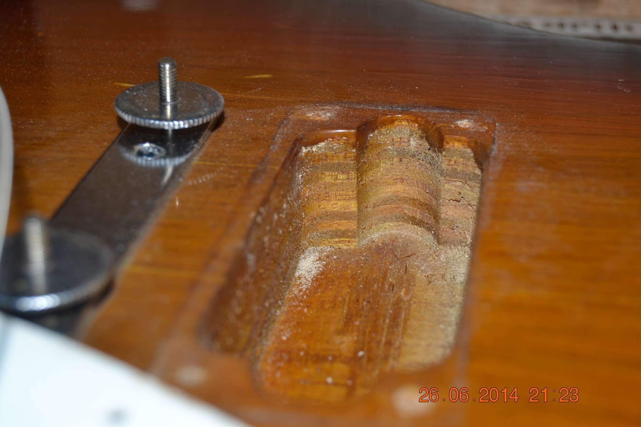 Да клевый. Тока у меня с 2005 года и по мере прибавления гитар, я свой замодил. ТЫ же видел там машинку тремоло? Ржачная, но работала. Но я снял ее и поставил с литыми седлами, киль, правда не массивный, но все же уже по посадочным уже любой могу стандартный поставить. Поскольку там несколько уже расстояния между шурупами. На моей фотке видно, что я заделывал отверстия и пересверливал. Под хамбы я выбрал полости и поменял пластик. Там такой винтаж афигенский, двухслойный стоял. но я его переставил на одно буратино и сделал тоже классный страт, продал его по цене установленных техас спешл парню. А на вестмистер поставил хамбы и под перл все замутил. Отсечки и проч. Но отсечками, как оказалось, я особо не пользуюсь, так что переделаю на стандартную схему. Вот только приедут крышки на хамбы и тогда будет все вашпе последним аккордом.