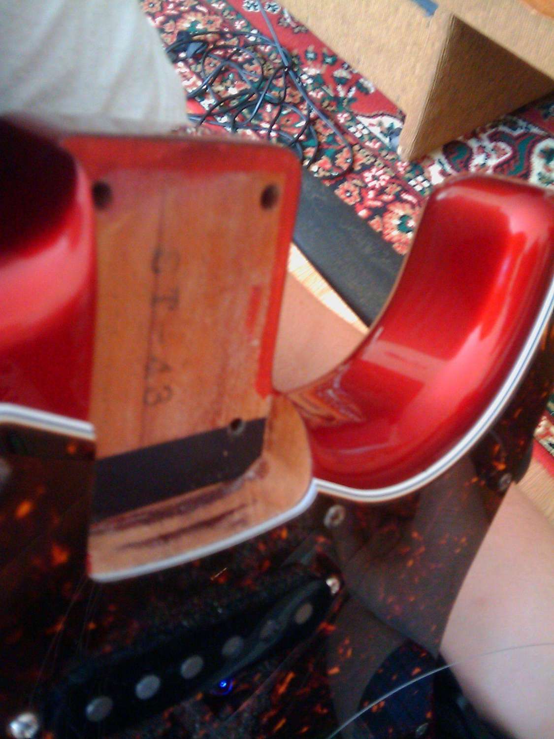 Я встречал страты японские без надписи мед джапан только с серийником,я видел серийники под надписью фендер или стратокастер на лицевой стороне бошки,видел разные положения страны производства,видел на пятке грифа,видел на пластине.Но тут серийника нет.Есть еще штампы между корпусом и грифом.Там штампом отпечатано ST-43 и STС-62 соответственно.Что за зверь такой?))Датчики wilkinson везде на электронике написано мейд ин джапэн+серийные номера самих датчиков и потенциометров.