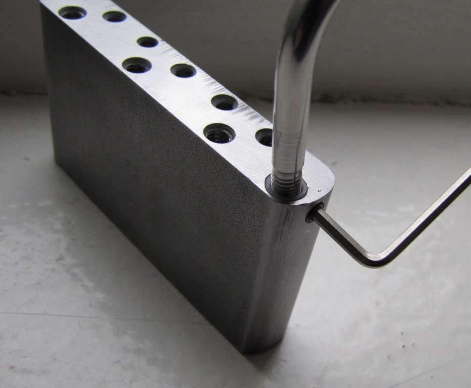 На всех своих гитарах делаю так(см.фото) Рассверливаю отверстие глубиной 5-7мм, диаметр 6мм, блок нагреваю, вставляю пробку из соответствующего полимерного материала .. Это если кратко.