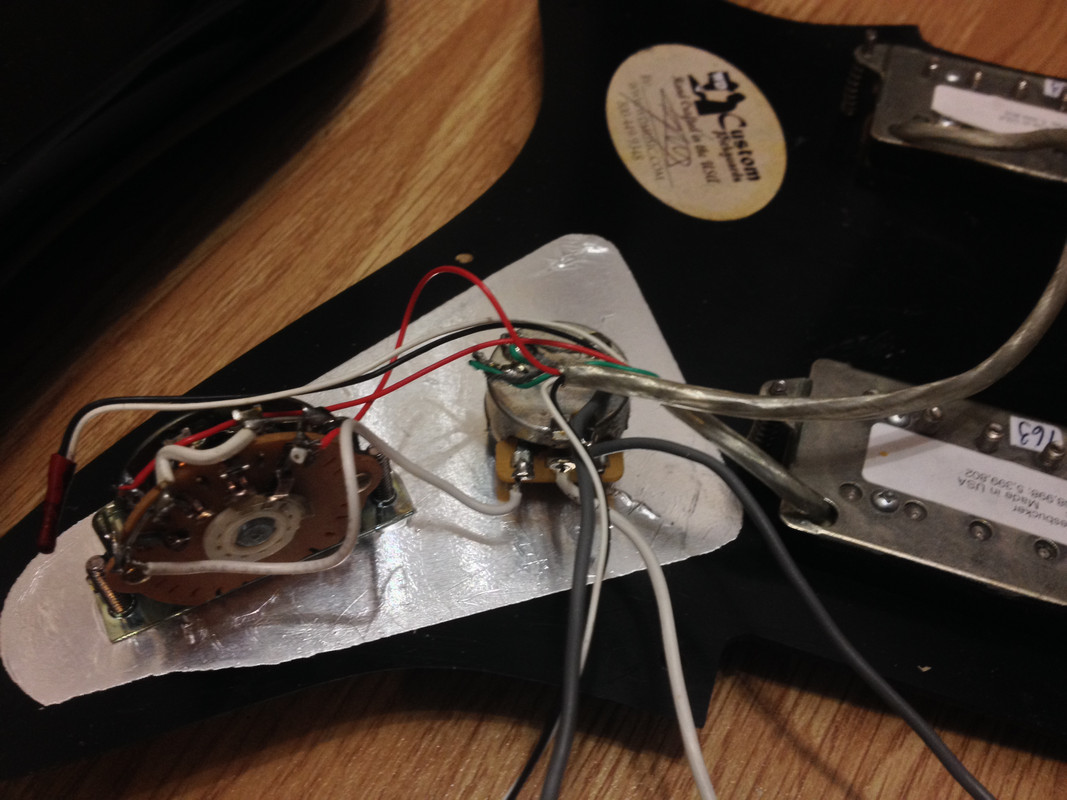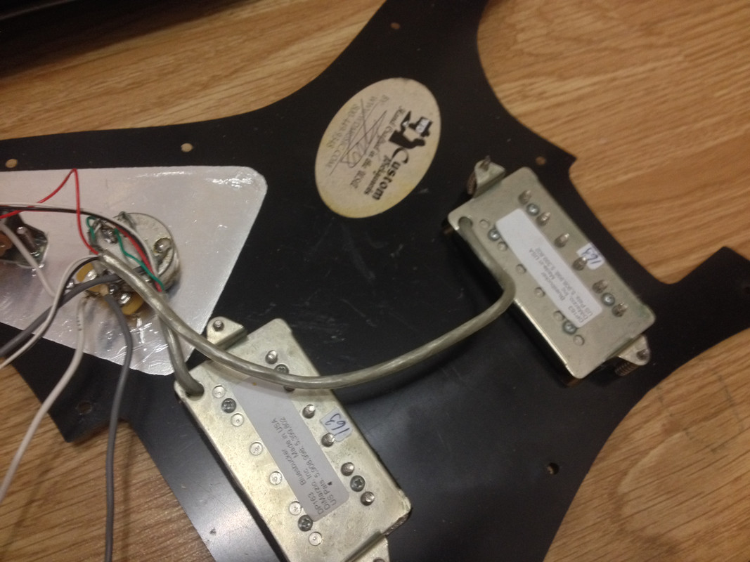 А зачем тебе надо было экранировать полностью пикгард под хамбакеры? Смысла нет.
