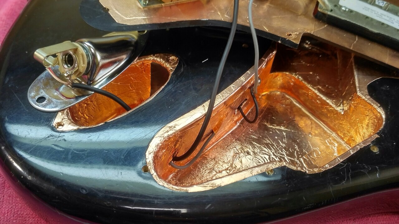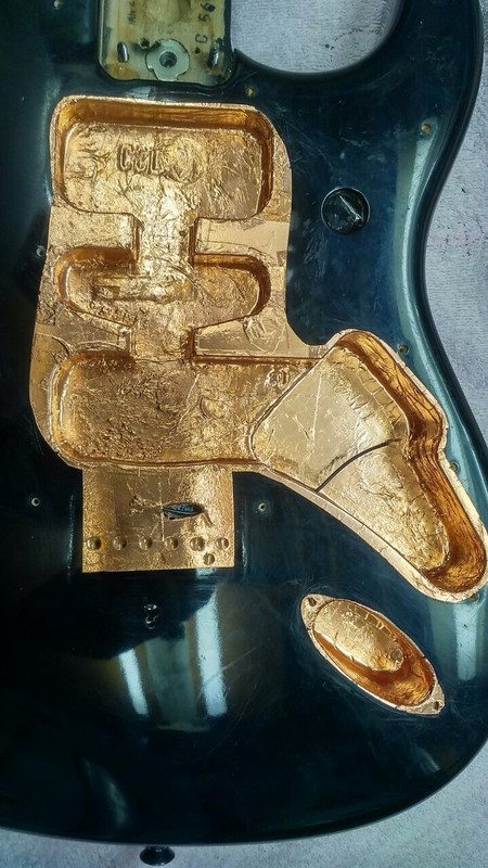 Кстати, я делал экран на пикгарде (не оригинальном) пару раз обычной фольгой, а не дорогой Dimarzio. Причем единым слоем. Сейчас в этом смысла нет, так как даже на али-экспресс идут пикгарды с экраном на всю полость гитары.