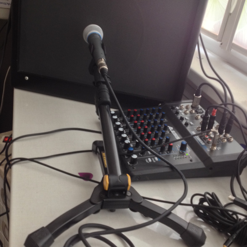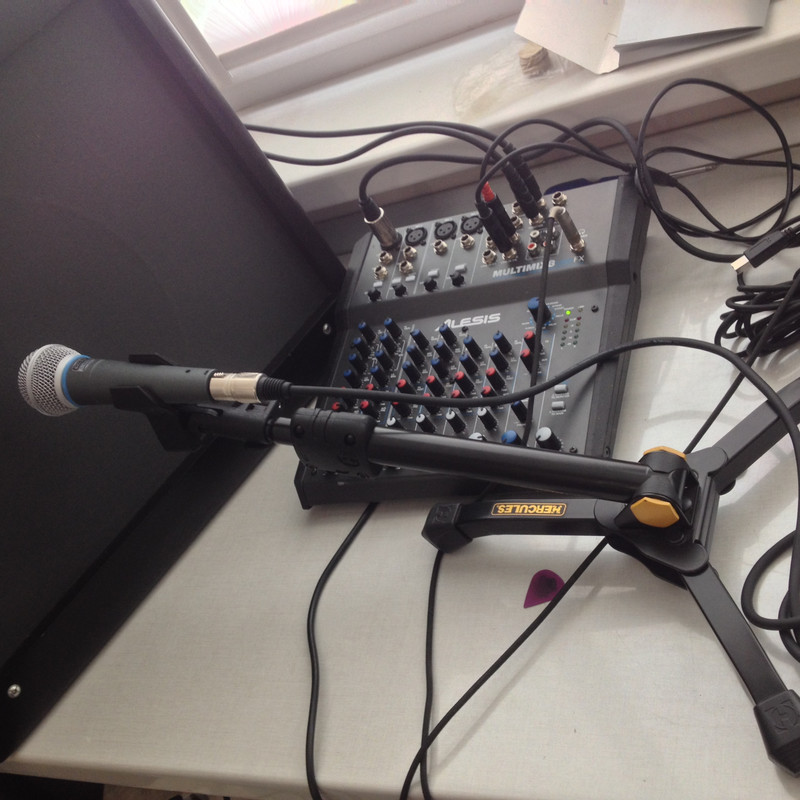 Т.е. микрофон+гитарный динамик, ламповый усилитель в мой персональный пульт Alesis