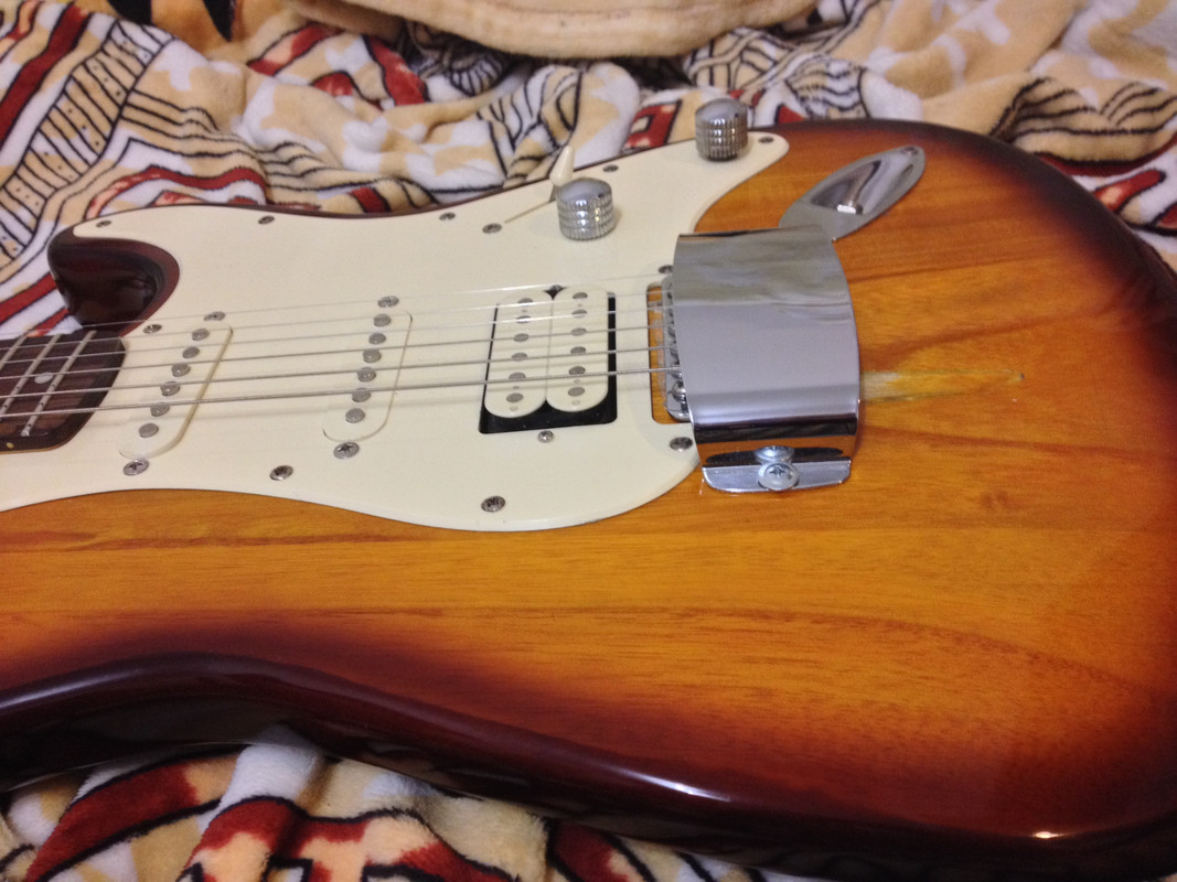 Начал думать о замене тремоло на хардтейл: дудки, номер не пройдет, т.к. в деке дырень с завода.