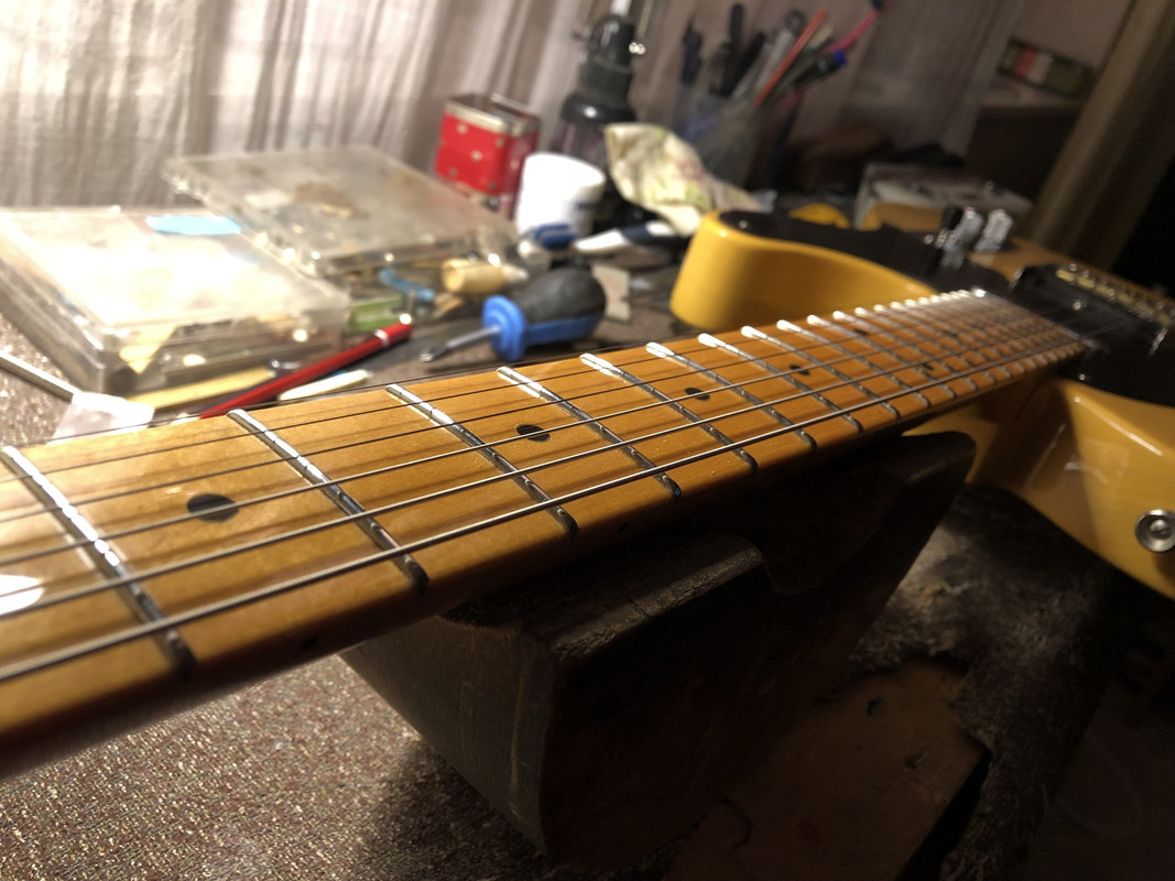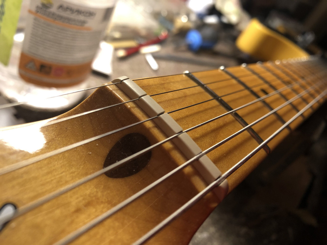 Короче, повезу гитару обратно) Единственный минус, до мастера ехать туда обратно 40км и часа 2 дороги по пробкам ... и добавил:Кстати, есть у кого фотка нормально поменянных ладов на кленовом грифе без накладки? Желательно сбоку, чтобы было видно как лады сели