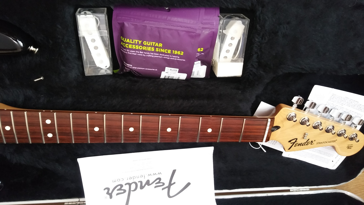получил посылку, страт Fender Standard 2013, Mexico... чччорный.