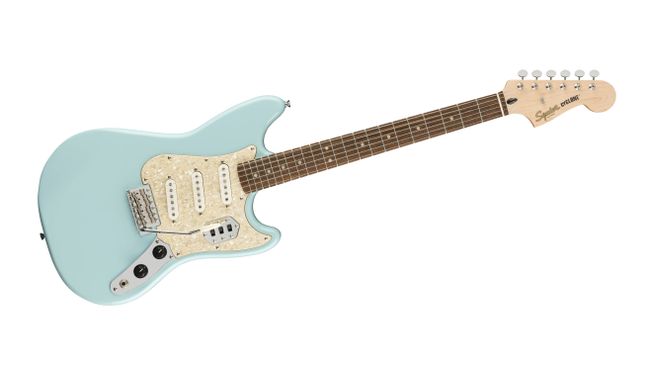 "The Paranormal Cyclone combines details from several iconic Fender models to create a whirlwind that is greater than the sum of its parts. With a small offset body shape borrowed from the Mustang, pickups and vintage-style tremolo from a Stratocaster, and controls from a Jaguar, this guitar delivers standout style and versatile tone perfect for any musical genre. Further player-friendly callouts include a 24.75” scale length and slim “C”-shape neck profile for easy playability and a gloss neck finish for a slick feel."