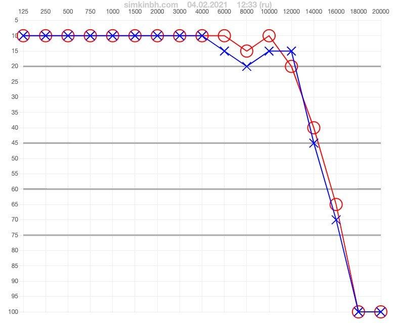 блин, проверил слух свой - слышу от 15 до 15 кНц, при этом слушал в наушниках с телефона (надо через внешнюю звуковуху затестить) и качество не выставил макс... Самое дикое что у меня правое ухо высокие слышит немного хуже левого (сначала думал разбаланс наушников - поменял местами - и блин понял что уши! Страшный тест ))) мне 44 года.Желательно слушать с утра, т.к. вечером уши устают и восприимчивость к высоким частотам снижается... Я иногда слышу вч писк блоков питания Ж)))