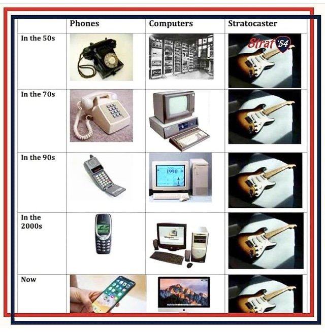 ... и добавил:https://www.youtube.com/watch?v=dJXjV6UY9lcЗацените, как играет -- вроде буги, ничего сложного, но очень ровно по ритму и по динамике. Это совсем молодой Бадди Меррил, одно из первых его появлений в шоу Лоуренса Велка. Он появился в 55м с кавером на Blue Suede Shoes Короля, а в 59м ушел в армию, так что это запись где-то между 55м и 59м, аутентичный стратокастер присутствует.
