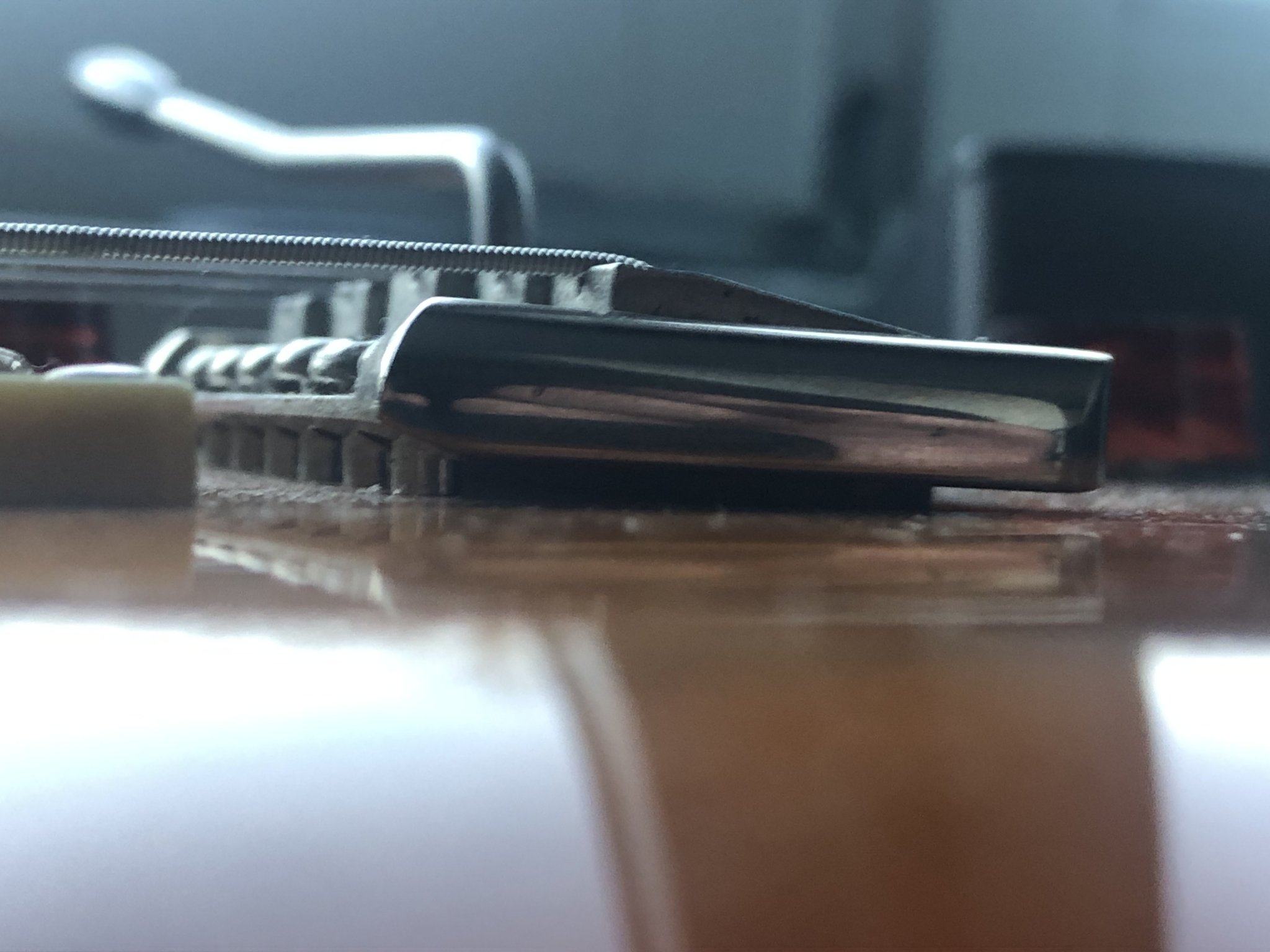 Тоже никогда не было проблем. По теме, подозреваю, что винты на толстых струнах недокручены, и пластина имеет возможность уползать в сторону головок винтов. Если что, я заворачиваю до лёгкого упора, и отворачиваю назад, но далеко не на 2 оборота, в районе полоброта