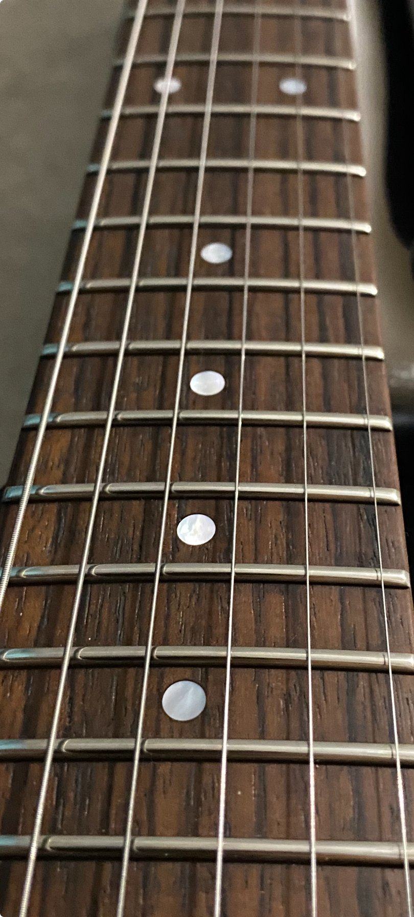 Высота 1мм местами 0,97. Бенды еще тянуть можно.. на высоких позициях пальцы уже накладку цепляют чуть сильнее. Но не критично прям. Но это была скорее последняя шлифовка. Сейчас присматриваю этой лошадке новые лады чтобы в случае чего не ждать наличия.))