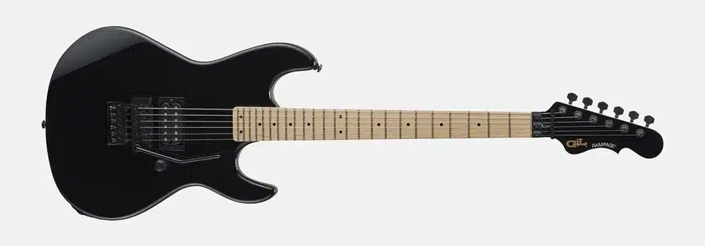 Rampage 24, доступный в цветах слоновой кости и черного цвета , имеет накладку грифа из клена или черного дерева радиусом 12 дюймов .