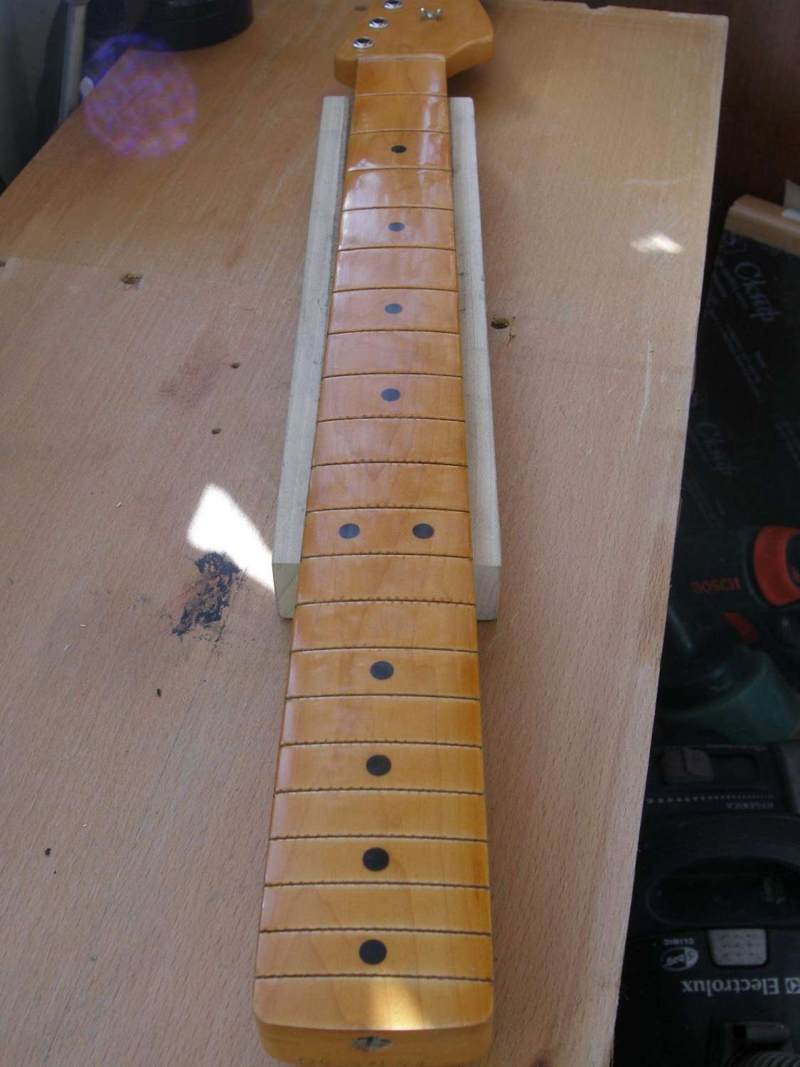 hohlov, ну старые и серия винтаж Фендер с залитыми лаком ладами это как Гибсон с шишичками на окантовке грифа .Мне пару раз приходилось по прозьбе клиентов менять лады по старой технологии с перелакировкой кленового грифа после замены ладов.