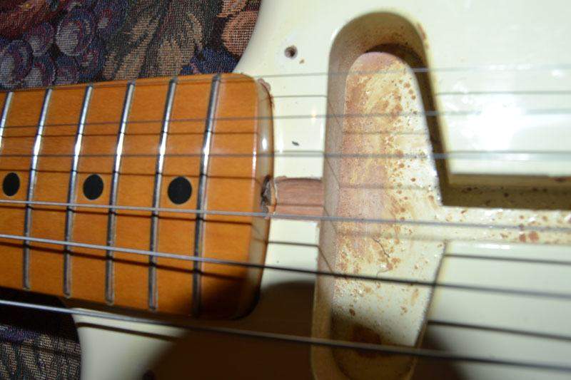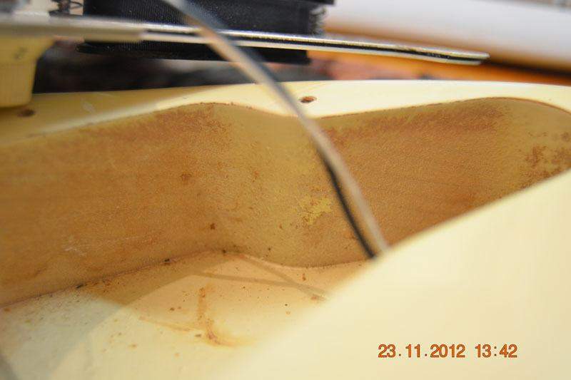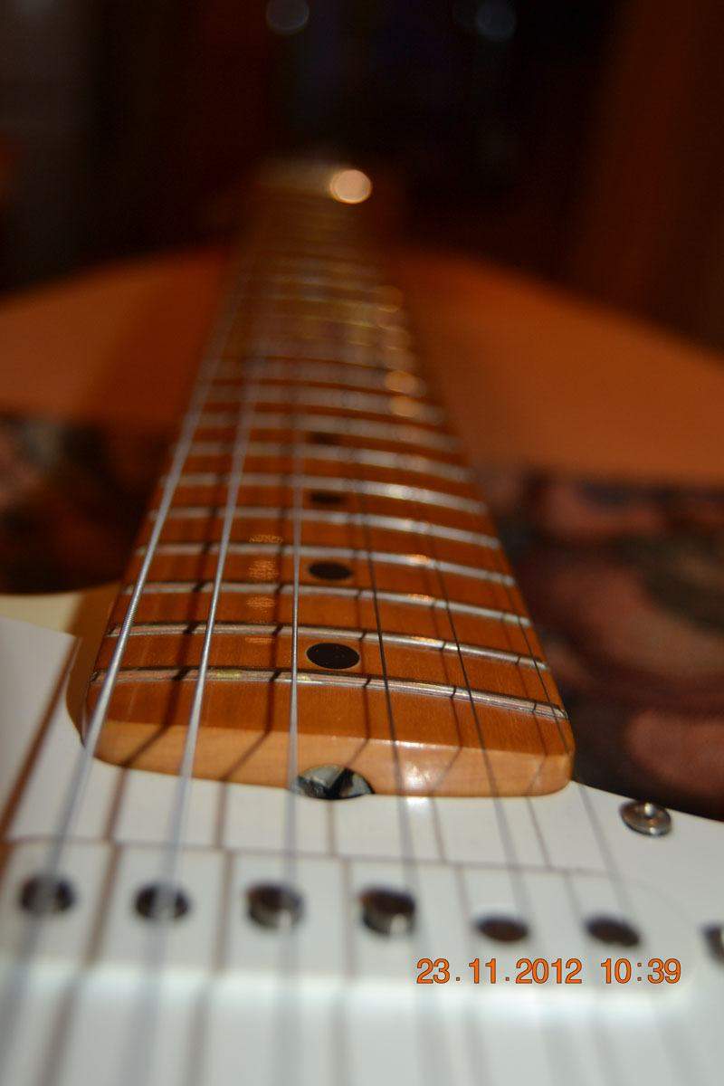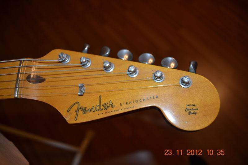 Вот такой страт. По серийному номеру с грифа 91-92 год выпуска. Гриф 57-го, корпус, если тока не какое-то исключение из ряда подобного, скорее всего от 62-ой модели. Пикард не менялся, отверстия под него, смещенных лишних не было. Материал затрудняюсь назвать, я два по пять в деревяхах. На фото, возможные места для идентификации, видны. Может кто опознает. Точно могу сказать, что красноватого отлива, видимо шлифуется на ура, местами видно дерево, гладкое как та кожа, за которую некоторые боялись, после своего развода