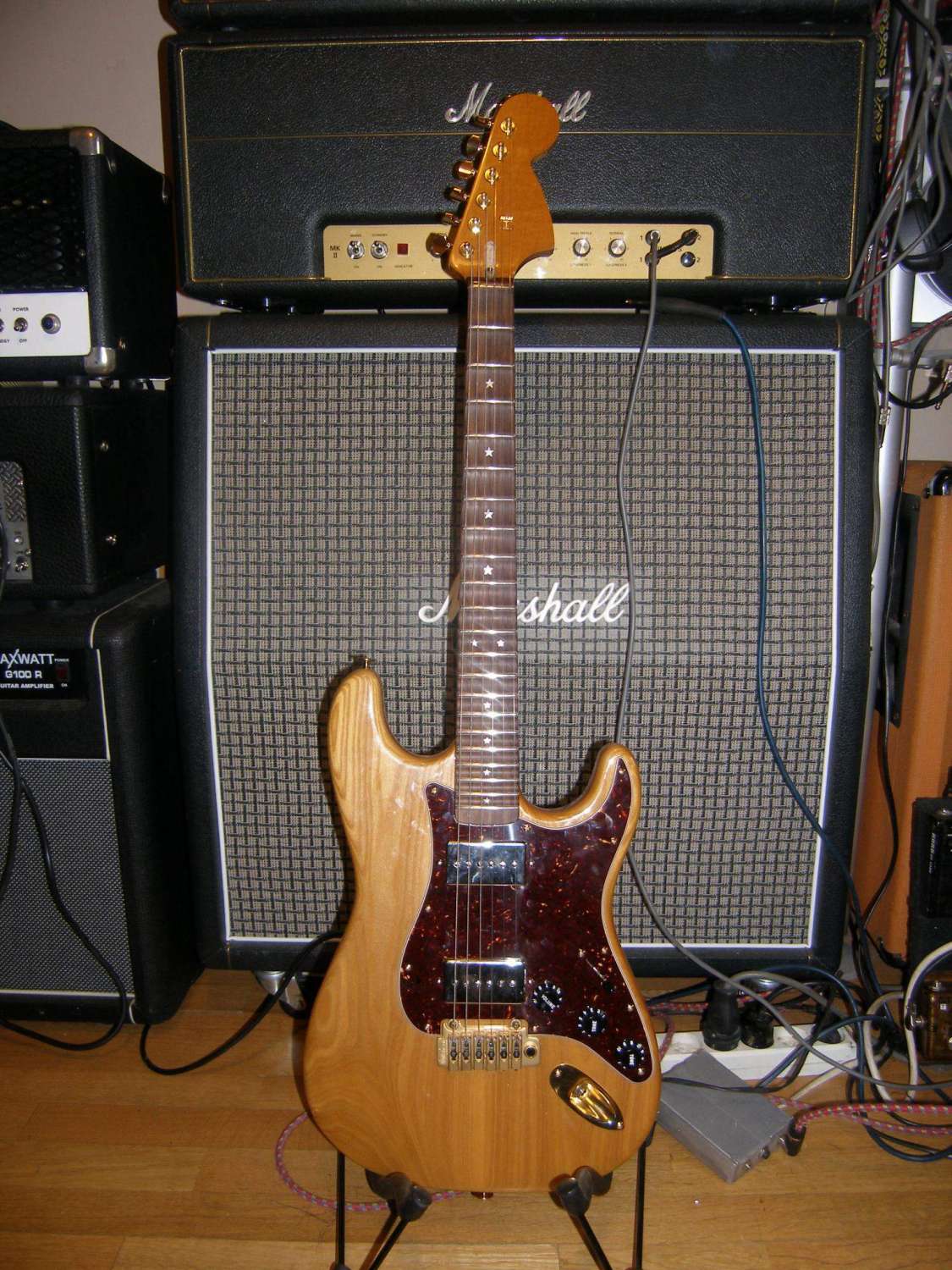 Недавно устанавливал на вот такой мастеровой страт , пикапсы seymour duncan phat cat .Звук супер но от страта там ничего не осталось.