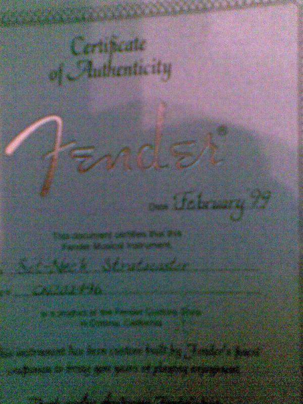 Родилась в отделении Custom Shop Fender в 1999 году в феврале месяце, на сертификате стоит имя: Mike Eldred. Гриф толи вклееный, толи сквозной, точно не скажу.