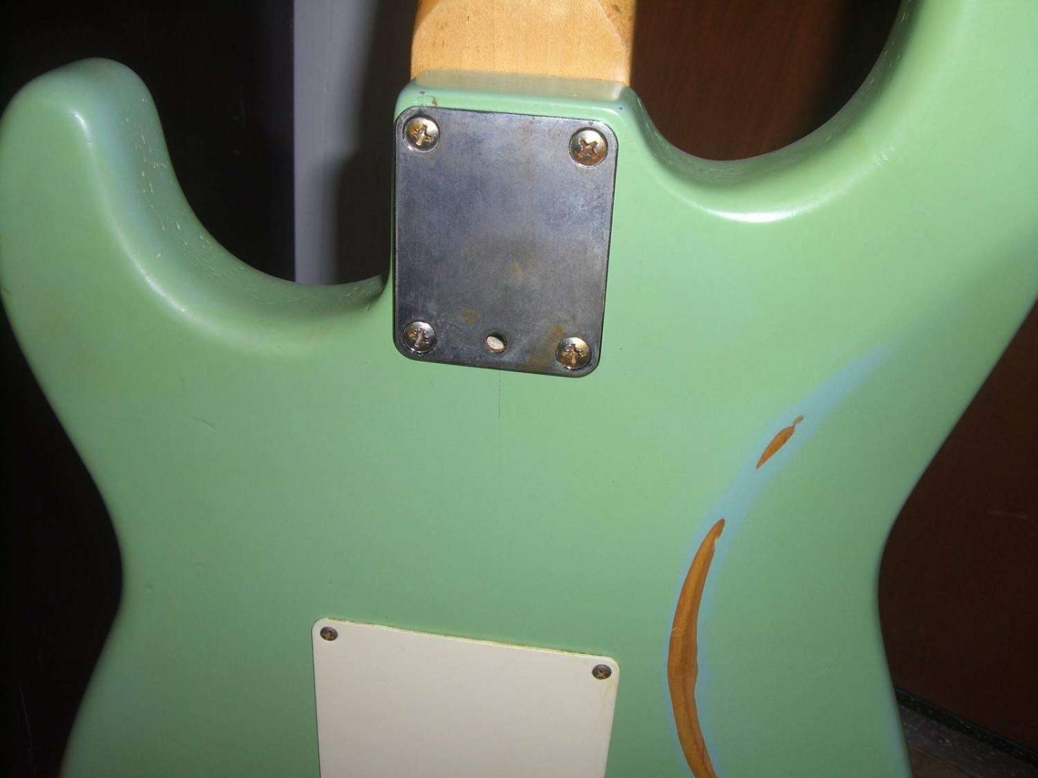 по мне так очень по молодому выглядит гриф, при этом фурнитура, такое ощущение, спецально побывала в соляном растворе. Да и старение пластиков не соответствует старению железа.+ " No serial number on the plate, the only numbers I found were 227 both on the body and the neck."... и добавил:а вот и ответ: http://www.ebay.com/itm/Fender-Stratocaster-1961-Road-Worn-Relic-/300971438770?pt=Guitar&hash=item46134bb2b2Fender Stratocaster 1961 "Relic" Created and Set-Up by Master Luthier Michael J Riggs