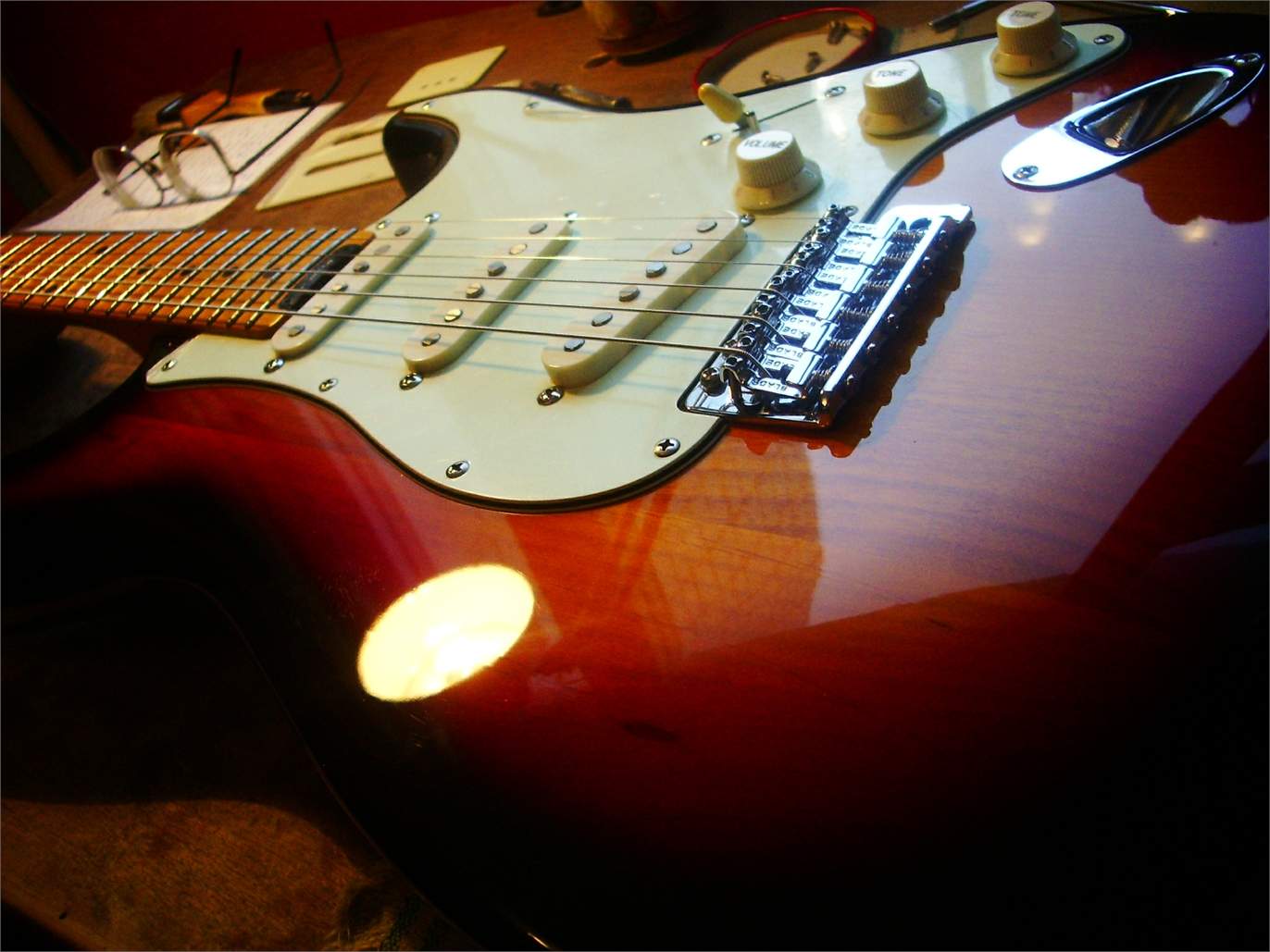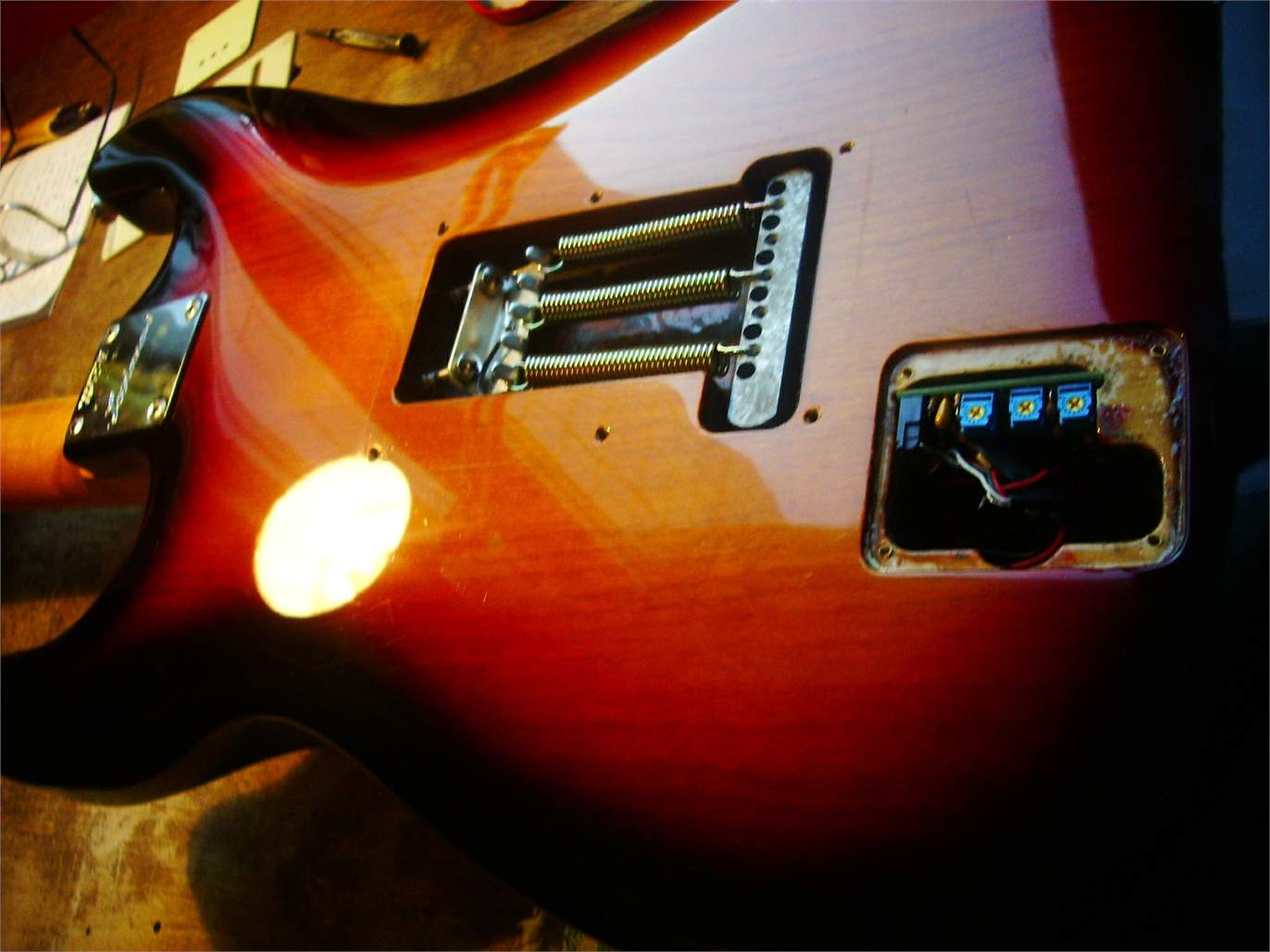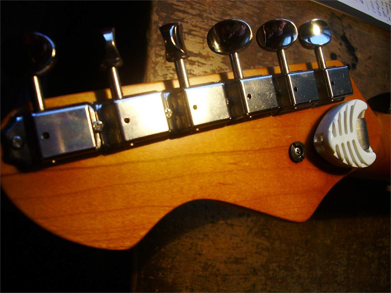 я его записал без отстройки, высоко и неудобно, у него есть преамп с регулиремыми С/В/Н частотами, который ещё пока не работал, но добавляет красок прилично.. на мой взгляд, уровня обычного среднего стандарта.. что немного удивило, чистый б/м нормальный, а овердрайв, даже небольшой, сыпет и рассыпается, при ольхе корпусе.. а вообще, его купили за 3000 рублей, мне отдали штуку за приведение в чувство.. звук абсолютно покрывает затраты..