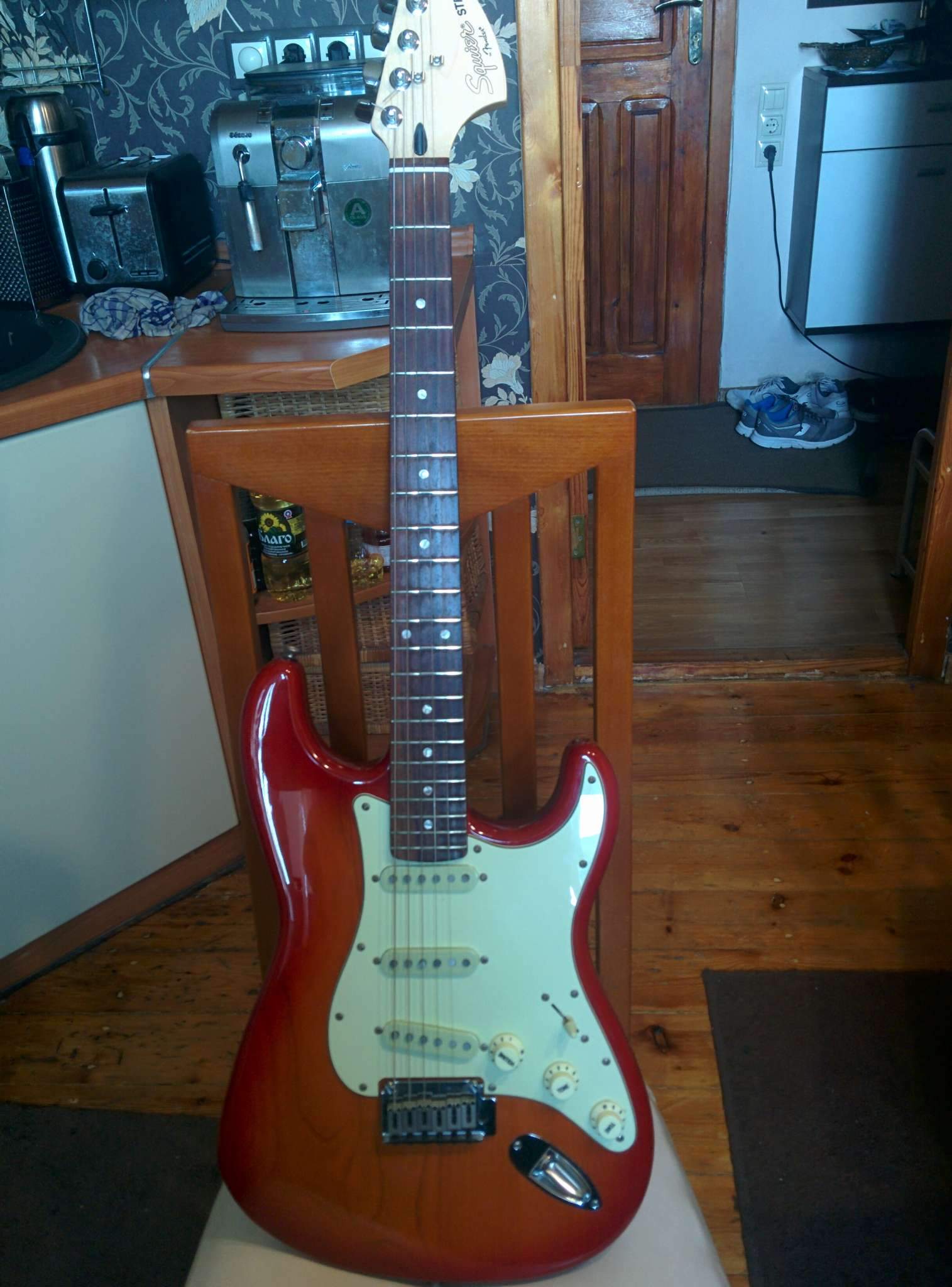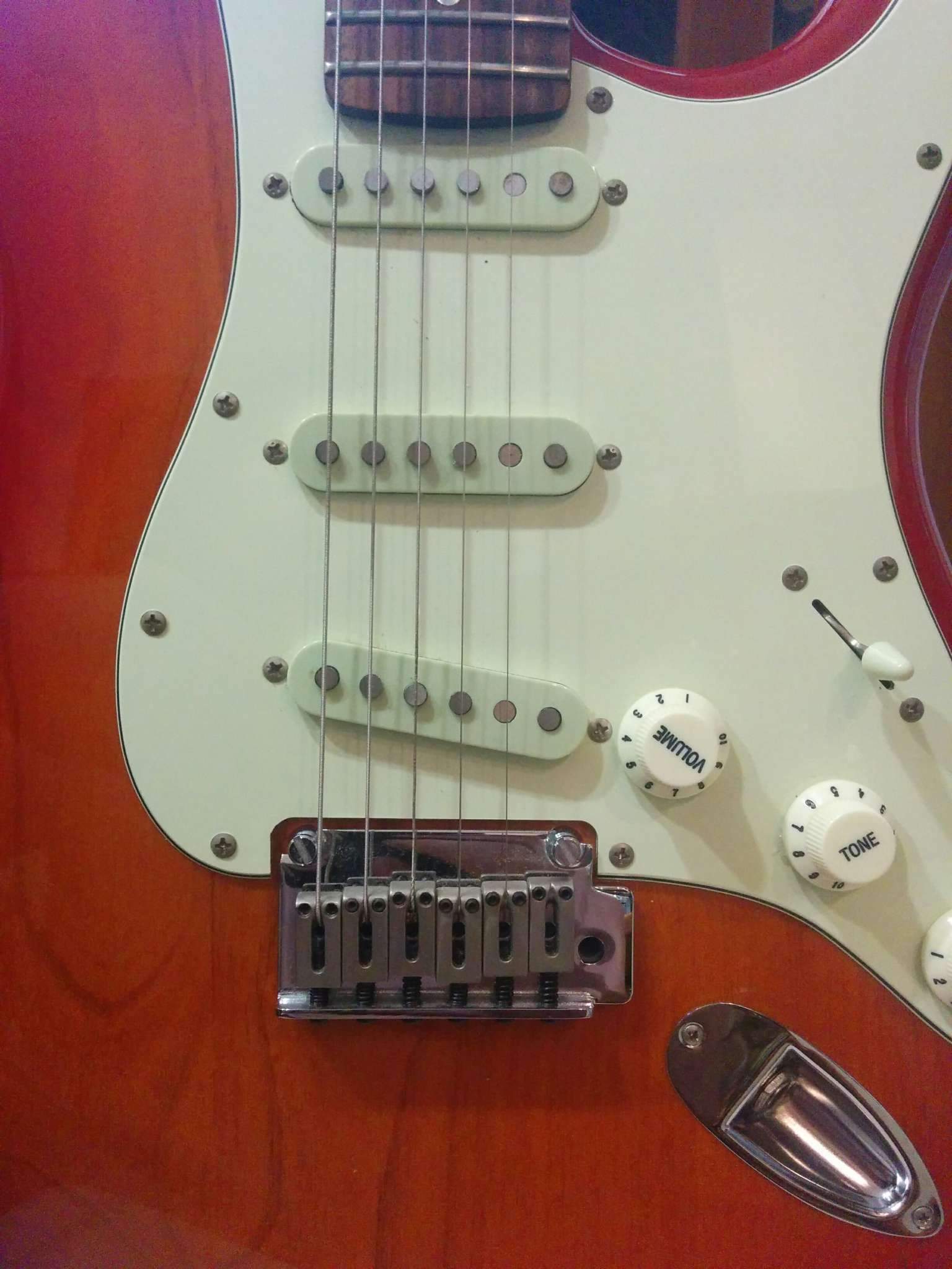 Была куплена где-то пол года назад (до этого ничего стратоподобного не имел). Увидел понравившуюся гитару в одном магазине, торгуешь б/у, так был куплен мой первый страт MIM. Всё в нём было хорошо...вначале