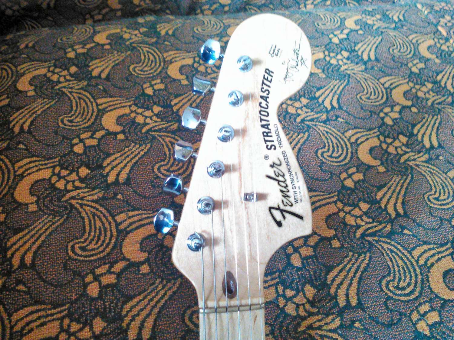 Немного про мой страт: японец STR-850 1986-1987 год. Дека - ясень, гриф клен+палисандр, двухболтовое тремоло. Бывшим владельцем пикгард с сетом Lace Sensor blue/silver/red и мидбутом заменен на сет EMG SA/SA/89. Под машинкой выборка, поэтому работает в обе стороны. Можно назвать японским делюксом )