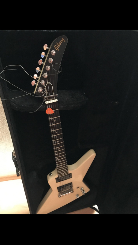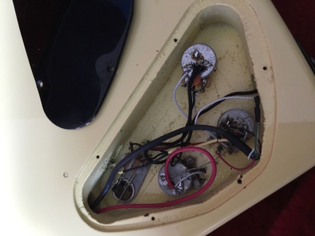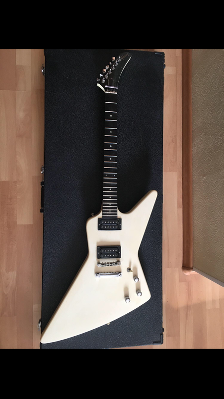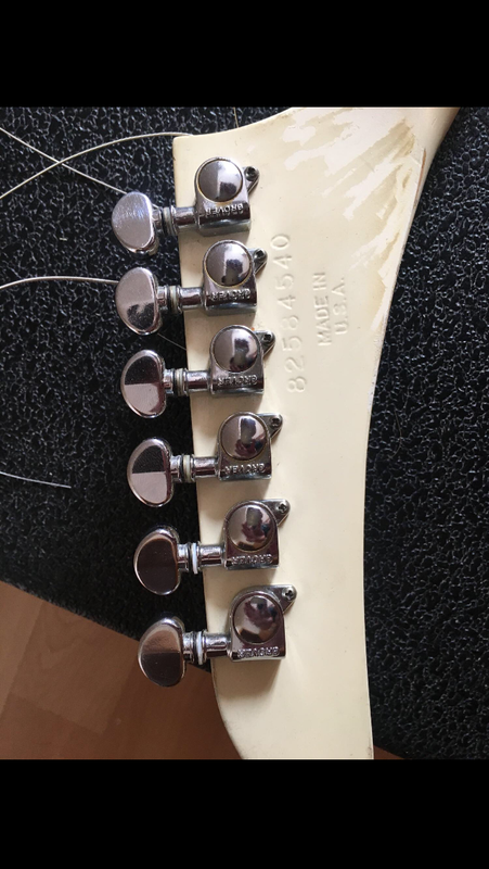 Вообще похоже что на грифе тоже под белой краской чето черное торчит, нет? Гриф кстати скорее всего клен по фактуре. Выемка в дереве очень похожа на тремоло Kahler) В 84 кроме таких экспов был еще Designer Series (вроде что-то такое), они часто были с артами на черном фоне, в остальном по спекам похожи, и как раз были с калером. Потенциально это может быть такой, мало ли.