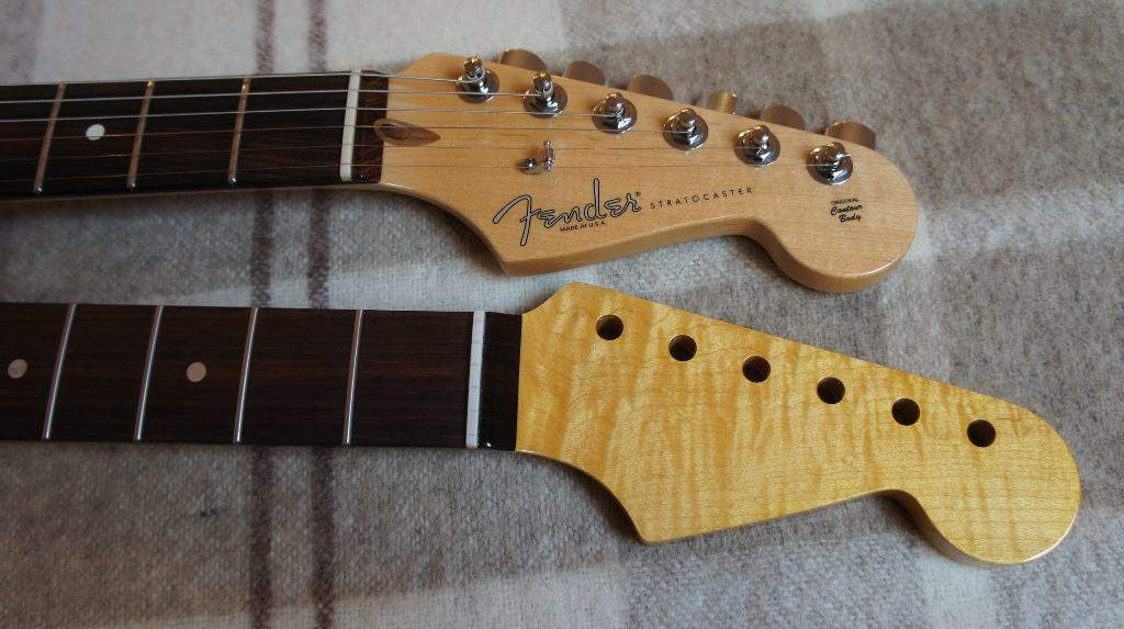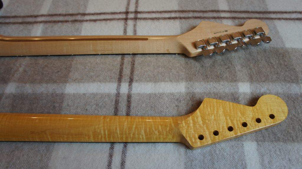 Гриф из стока. Я вообще склоняюсь к мысли, что если в стоке есть то что хочется, - не стоит заморачиваться с заказом. Тут видно непосредственно деревяшку в деталях, знаешь что получишь, по деньгам подешевле, по времени экономия очень существенная.
