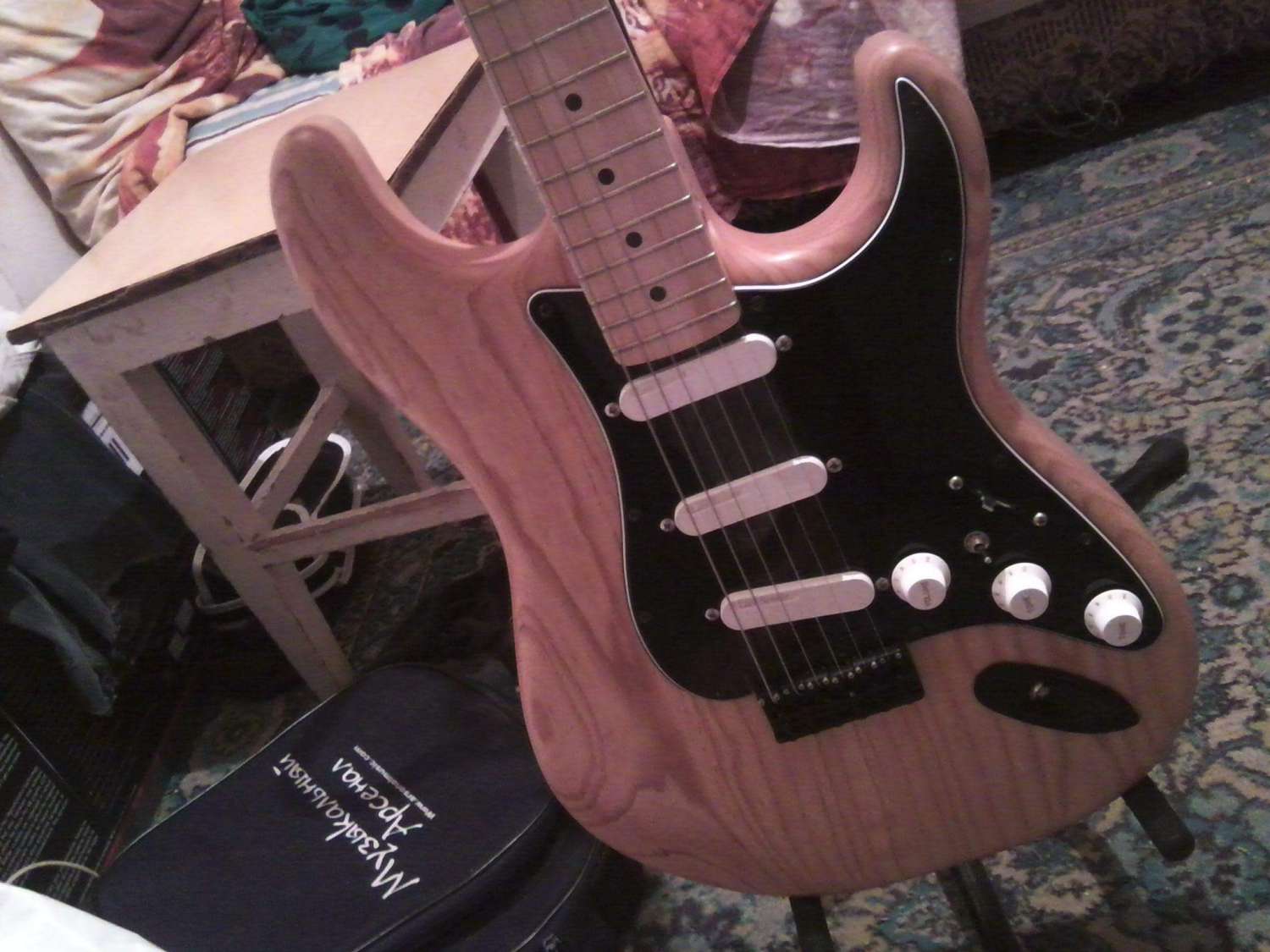 этот сатин обошелся в 30 с доставкой, если красить или лакировать гриф и деку то это + 10 кэсов, но смысла не делать этого тоже нету, потому как дерево просто испортится от влаги или недостатка, а масла всякие считаю не серьезным покрытием, звучит как и должен страт, я вообще гитары от фендора после вармота перестал воспринимать, это как сравнивать фодеру и какуюнибудь серийную гитарку, скажу так если хочешь шедеврально-эпический звук и вид не хуже -вармот, а если гитару с надписью фендор на грифе то...)