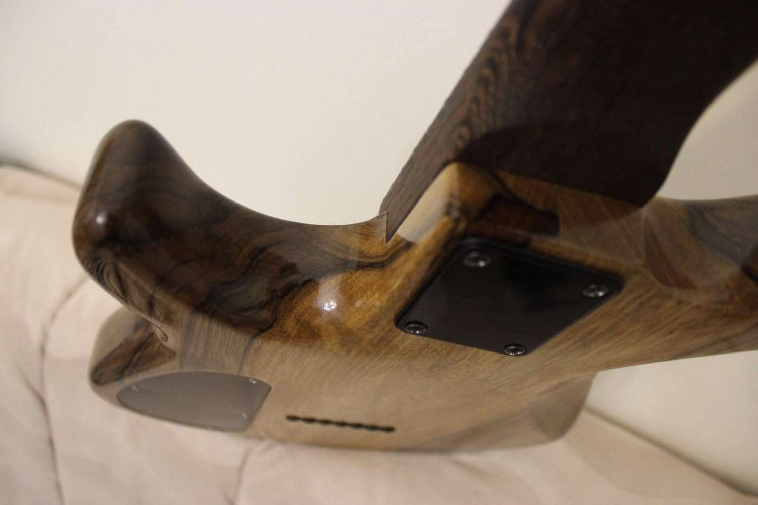 Представляю Вашему вниманию методику по покрытию гитары средством для оруженых прикладов Birchwood Casey Tru-oil gunstock finish, но которое с легкостью "конверсируется" и для гитарного финиша, как тушек, так и грифов. Покрытие получается приятное на ощупь, в меру плотное. в зависимости от количества слоев можно получить от защитного матового, подчеркивающего структуру дерева, до глянцевого и сверкающего. В принципе, если Вы не очень любите возиться со сборкой и прочим, то лучше не экономить 180 баксов и заказать как минимум простенький финиш на Warmoth - масляное покрытие все же либо для экспериментов: звука и прочего, либо от сильной экономии, либо если лкп инструмента восстановлению не подлежит. По твердости все же ничто не может сравниться с классическим лкп гитар, все остальное куда мягче. Tru oil один из наиболее твердых, хотя, например, не особо сочетается с полировкой 76 номером пасты ЗМ - на тестовом покрытии я дополировал до дерева сравнительно небольшим движением; в данном случае полировка нужна более мягкая.