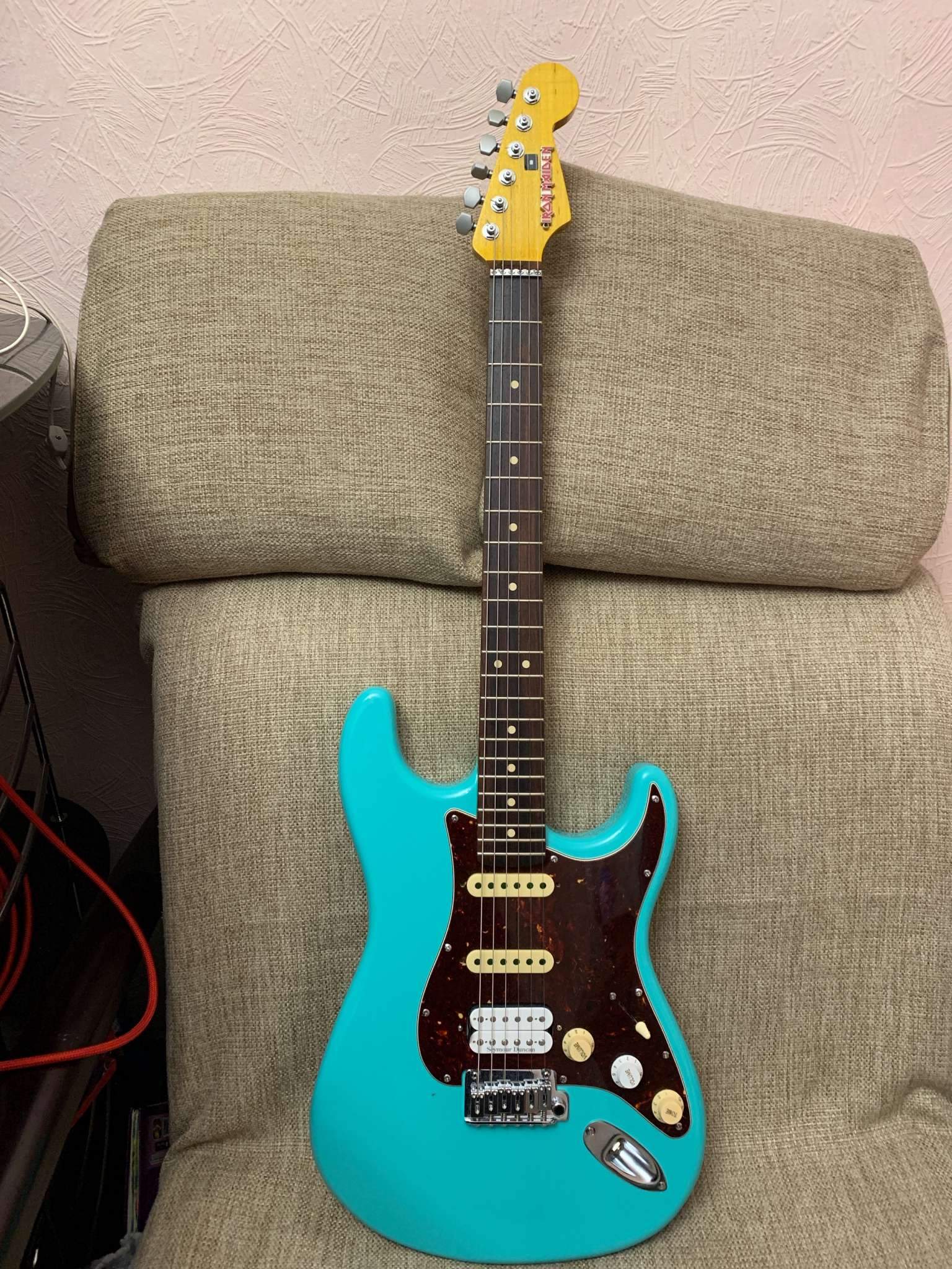 Доброго всем вечера! Собрал такой Вармот. Теперь тоже в клубе. Гриф клен с-профиль , 10-16’ радиус, радиальный распил/ палисандр, модерн. Дека ольха. Цвет Sea foam green, его сложно передать на фото, в живую очень классно смотрится. Тремоло бридж gotoh 510t, колки sparzel, порожек fender роликовый, пикгард фендер , звукосниматель пока один SD Sh-4 + тон и громкость.Гриф и деку брал с ибей, гриф лёгкое бу, дека новая. Инструмент очень нравится и радует.