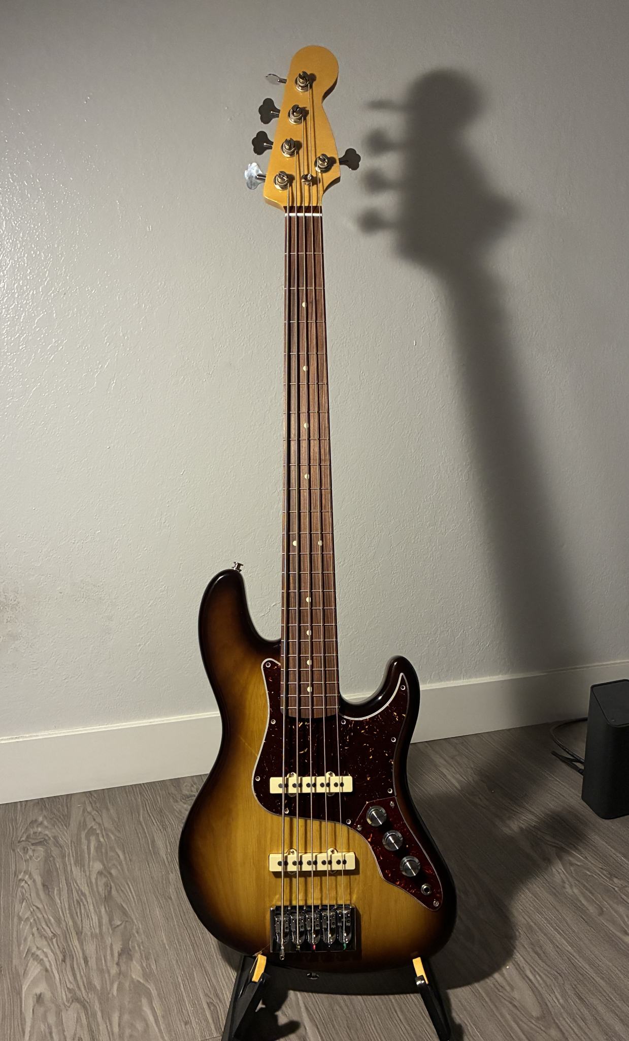 Доделал джаз бас.) Ясень, радиальный клён, пао ферро, железки Хипшот, пассивная электроника v-v-t на логарифмических CTS 500k и датчики за 10 баксов с Али экспресс. Струнки – нестандартный набор, собранный из даддарио. Хвостик пикгарда пилил сам из китайского пластика. Звук бомбический, пятая струна дубасит как кувалда.