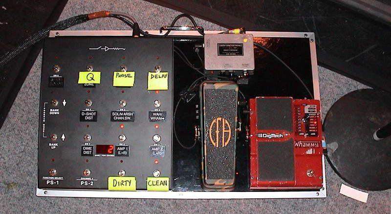 вот такая штука с несколькими кнопками в неё включаешь все педали, а кнопками переключаешь комбинации там квак с дилеем например или драйв с тремоло.
