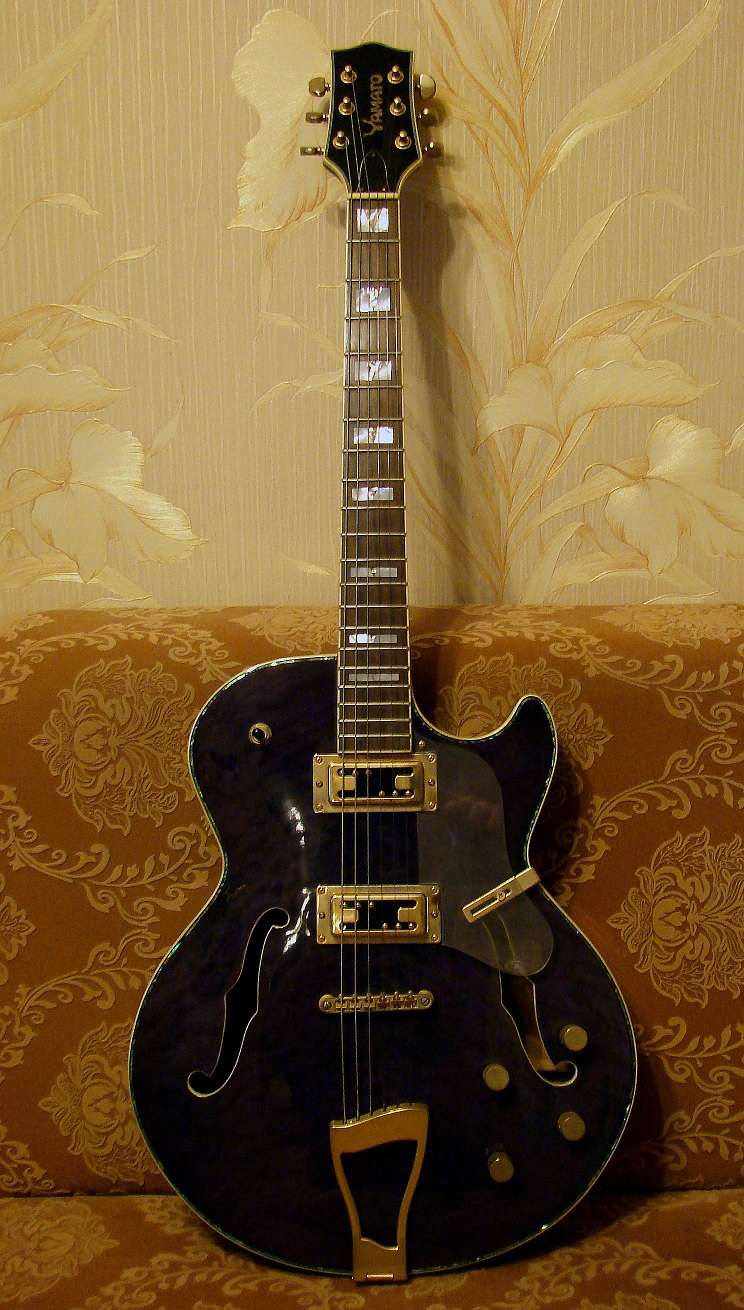 Всем любителям банок и полубанок хорошего дня.Прикупил по случаю интересный экземпляр,может кому пригодится инфа при выборе инструмента.Много писать я не любитель,поэтому достаточно коротко.Гитара довольно старенькая,но хорошо то что по всей видимости либо ей пользовались крайне мало либо не пользовались вовсе,так как по деке нет ни одной жизненной коцки или царапины,лады как будто с завода,даже на обмотке струн нет выбоин от ладов,позолота в местах предполагаемых контактов с руками не стерта,ну и на накладке отсутствуют следы ,,играбельности,, от пальцев.Вполне возможно что она просто висела на стене,у япошек это в порядке вещей,да и на позолоте довольно толстый слой патины(осадок от жизнедеятельности хозяев).Внешний вид - 9,балл скинул за то что лак со временем помутнел и фактура дерева стала хуже просматриваться,но это лечится шлифовкой верхнего слоя и полировкой.Верхняя дека обведена перламутровым кантом, переклей двух слоев,верхний из волнистого клена на подложке из непонятно чего,обейчайка и нижняя дека - что то очень похожее на еловые сорта древесины,ковырять глубоко рука не поднимается.Гриф из волнистого клена,под помутневшим лаком под лупой видно красивую витую текстуру,накладка из приличного темного палисандра,маркеры двухцветные из натурального перламутра. По общей конструкции - 8,угол вклейки грифа можно было сделать меньше,а так бридж на опорах поднят достаточно высоко и на некоторых струнах появляются призвуки от дребезга бриджа,но это тоже лечится установкой контрагаек на винты опор,ну и пикгард можно было бы сделать поинтереснее что ли,из того же клена и отторцевать кантом.Общее удобство игры - 9,гриф короткомензурный,достаточно узкий и хорошо лежит в руке,дека на мой взгляд толстовата,около 80мм после ,,досок,, правая рука лежит на деке непривычно.Качество изготовления - 9,про высокоподнятый бридж и пикгард уже упомянул,больше придраться не к чему,все сделано аккуратно,швы и стыки минимальные вполне на уровне кастомшопа.Звучание - типичная полуакустика,довольно яркий и сочный звук,дека резонирует отлично.На чистом звуке и легком перегрузе звучит очень красиво,ну и естественно эта гитара не для тяжелых стилей,на примочках для металлюг звук никакой и дека сразу заводится.Итого - за свои деньги (на сегодняшний день по курсу немного больше 300 долл) довольно приличный инструмент,самое главное редкий,ну а мелкие ,,косяки,, со временем устранятся.Приходилось держать в руках яматовскую копию 335 полубанки,корейского производства,тоже довольно приличный был гитар.Ну вот как то так вкратце.
