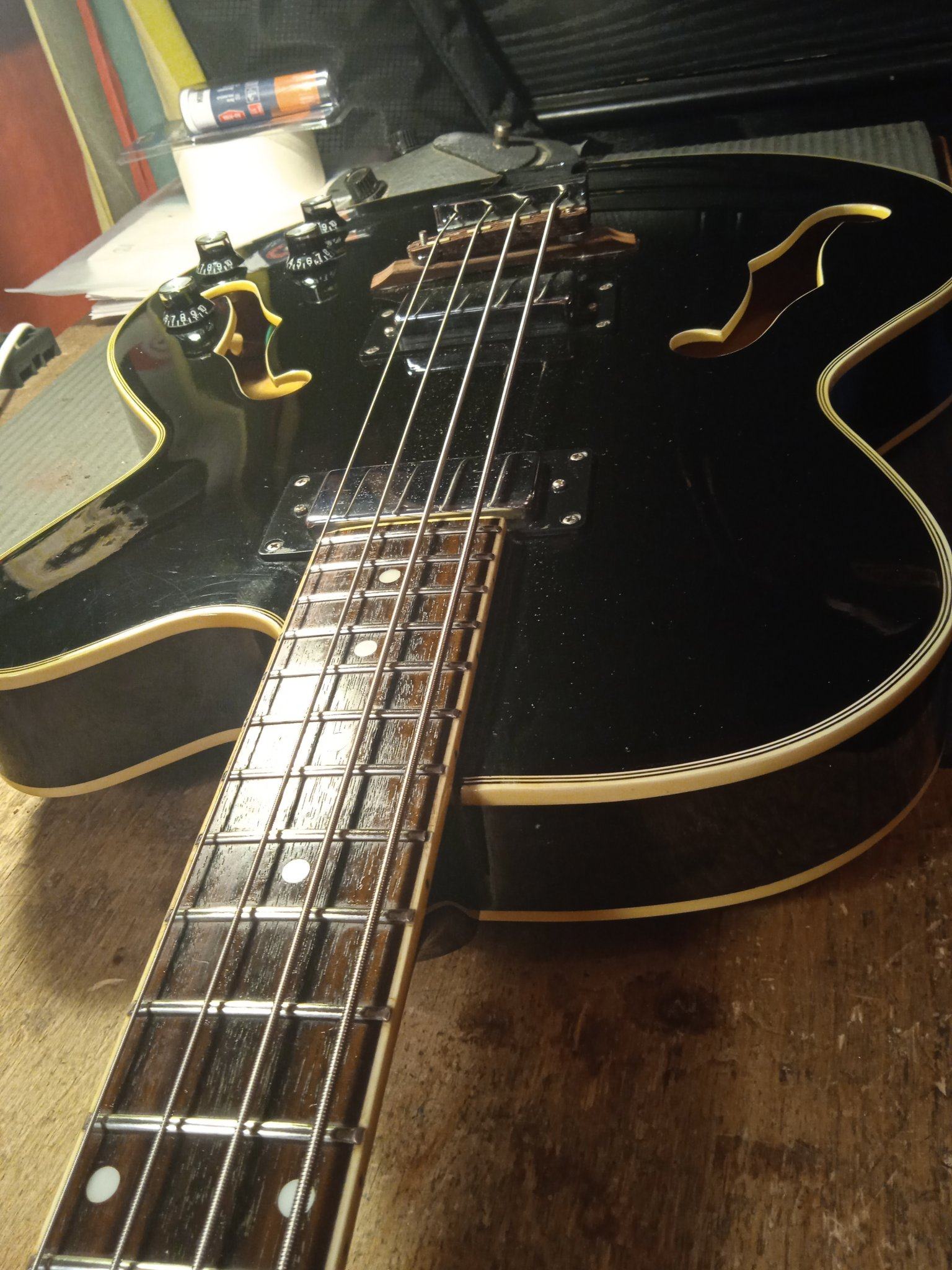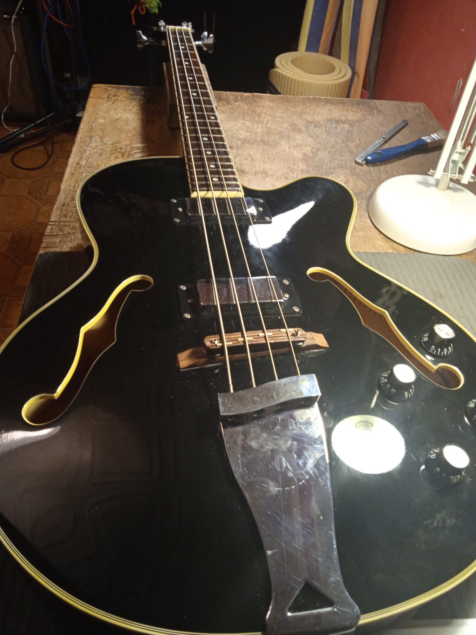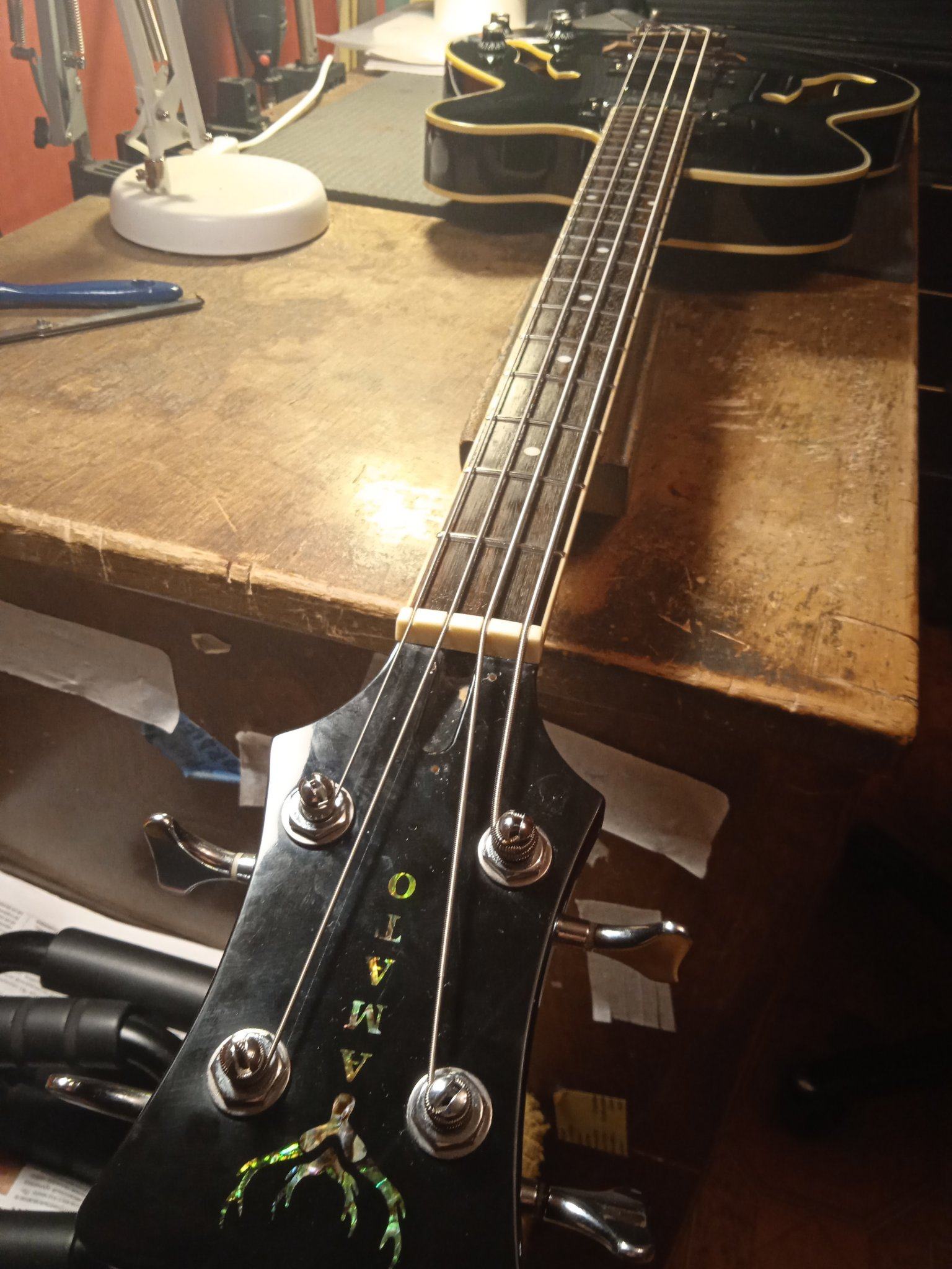 И слой надо потоньше. Это как раз - поставить порог на место, прижать аж опупевши, и капнуть , можно с одной стороны, супера. Он затечёт по неровностям, но не испортит прямого контакта порога с грифом, где прижалось хорошо... Можно по приклейке сразу капнуть раствором соды. кое-где супер вспучится и заполнит оставшиеся пустоты