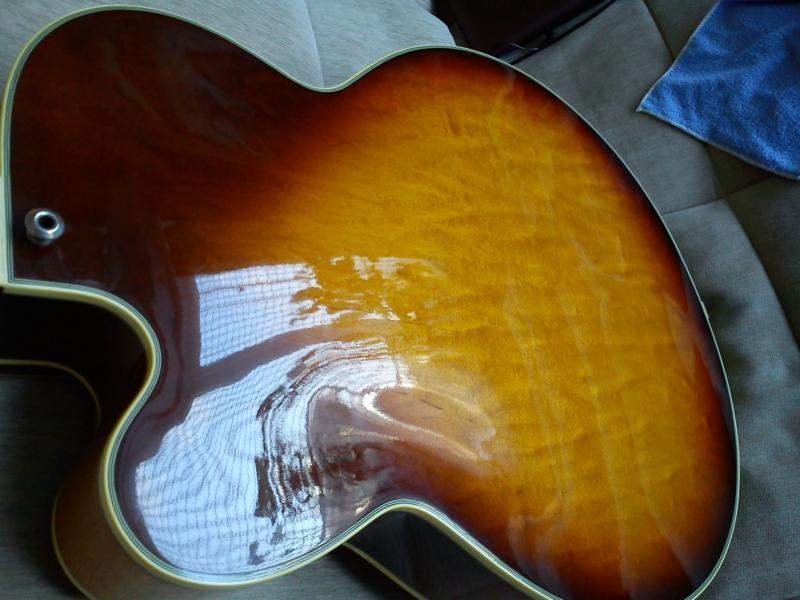 Супер-пупер гитарка!! Правда ,пришлось отчищать всё железо и саму гитару отмывать, но состояние отличное, буквально 1-2 вмятинки еле-заметные. Натянул плоские струнки 13-53 - это джаз ))) Это классика ) Вес Монтгомери и Бирелли Лагрен - больше всего их звук мне напомнило, у Ритенура немного по-другому L5 звучит. Ещё на Кенни Барелла похоже )