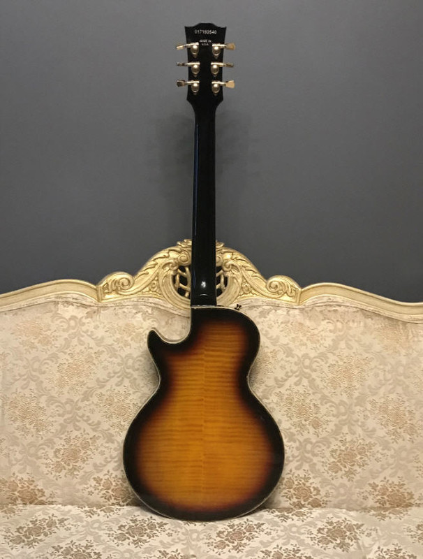 Давно хотел приобрести себе Gibson Memphis Les Paul. Вообще-то идея с Ф-ками на ЛП пришла ко мне ещё в 80х. При этом в идеале это должно было быть порядка 7.5-8 см по толщине, не ниже, супротив обычных гибсоновых 5-5.3см ( или сколько там у них). Может когда нибудь и закажу себе подобную. При такой толщине акустические данные, полагаю, должны быть уже поглубже, чем у плоскодонок типа 335го. Но известным я не стал, менеджером по произвудству на гибсоне тоже, соответственно своей модели мне не видать. По сему Gibson Les Paul Memphis.